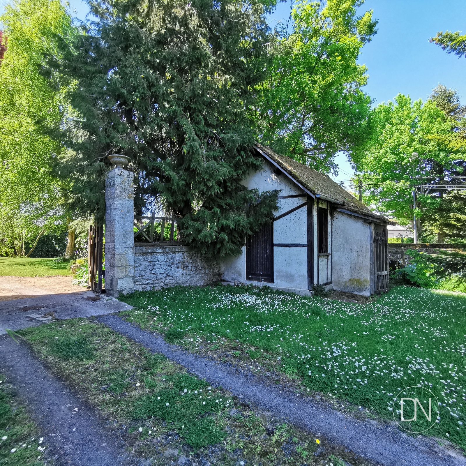 Bâtiment de style Anglo normand pouvant être aménagé en habitation comprenant: 3 pièces (14, 42, 10 et 17m²), 2 garages de 17m² et 44m² 2 appentis (31 et 20m²). A l'étage une plateforme de 144m² habitable .