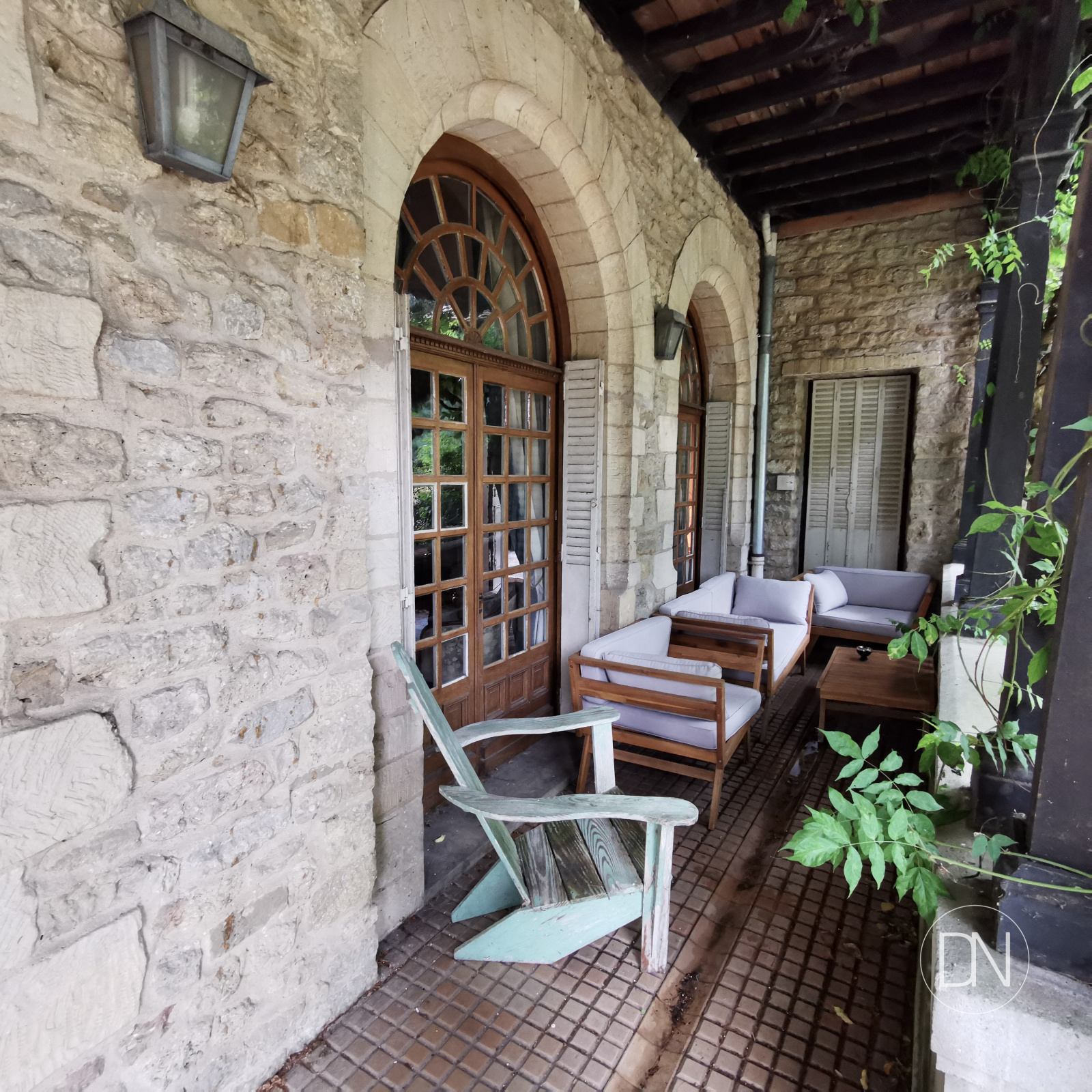 Chauffée. Accès vers le parc coté Est, l'office, la salle à manger et le bureau.
