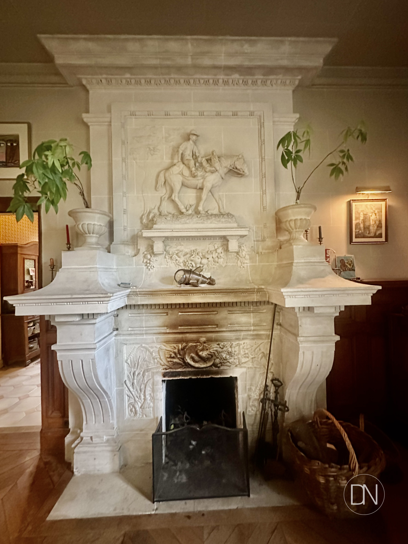 Cheminée. Accès vers le couloir