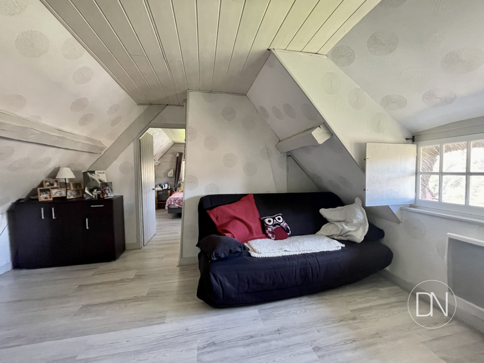 Située au centre d'un petit village à 4 km de Luneray et proche des plages, cette chaumière est un véritable petit cocon, idéale pour un couple où une personne seule. Sur environ 90 m2 de surface habitable, la maison distribue au rez-de-chaussée: un séjour/salon avec cheminée, une salle à manger, une cuisine indépendante aménagée et équipée, une salle de bains et des wc. À l'étage, l'escalier ouvre sur une belle pièce palière. Dans l'enfilade, une chambre avec placards. La chaumière s'entoure d'un terrain arboré de 2.664 m2 sur lequel se trouvent 2 chalets en bois l'un à usage de garage, l'autre d'atelier. Un accès voiture existe, non clôturé. Cablage existant pour installer un portail électrique.L'ambiance de la maison est chaleureuse et confortable, les espaces lumineux. Pas de travaux à prévoir à l'intérieur. À noter que le chaume sera à reprendre dans les années à venir. À 4 km des commerces et de tous les services (Luneray) et 8 minutes des plages de Saint-Aubin-sur-Mer (76), Veules-les-Roses et Quiberville sur Mer, cette maison vous offre un concept idéal de campagne à la mer".