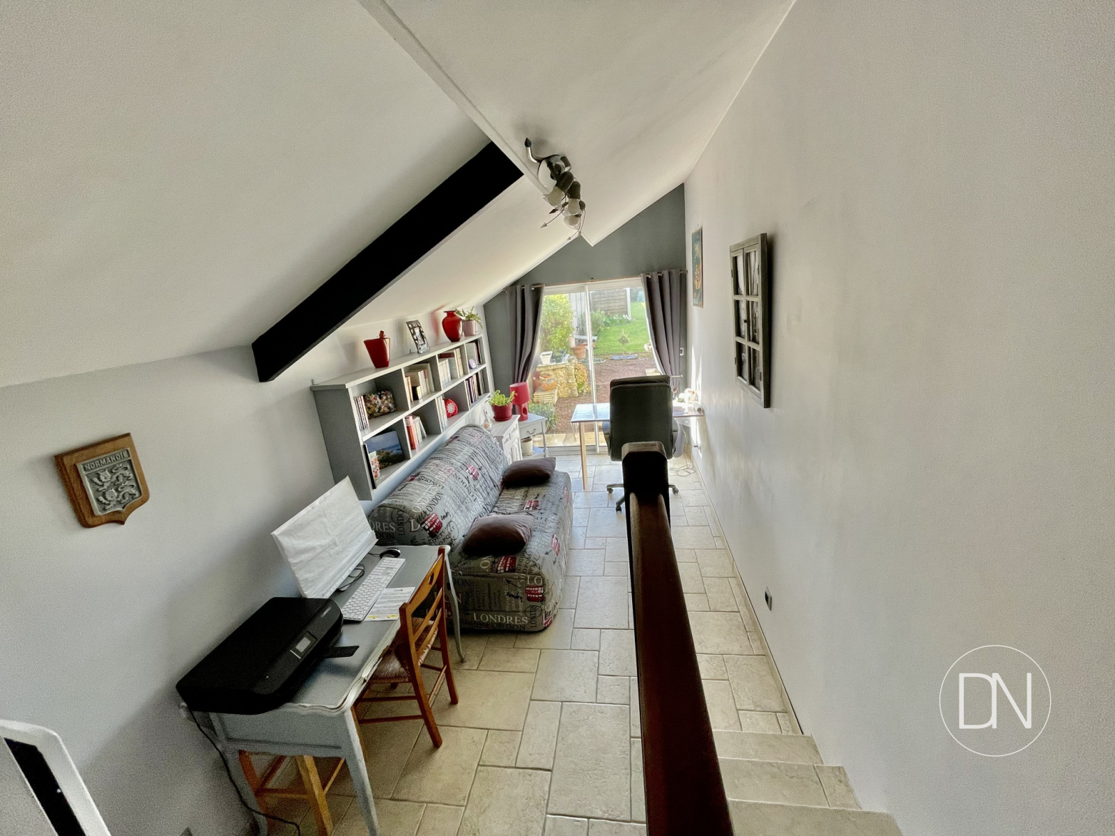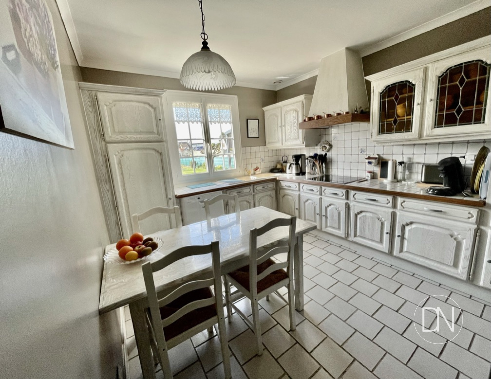 À 800 m de la plage, dans un quartier résidentiel et calme de Saint Aubin sur Mer (14), cette maison de plain pied offre une surface habitable d'environ 100 m2 comprenant: une entrée prolongée d'un espace bureau, un séjour/salon avec cheminée insert, une véranda de17.33 m2 donnant sur une terrasse de 55 m2 ouverte sur le jardin, une cuisine aménagée et équipée, des toilettes, une salle d'eau, 2 chambres dont une avec un placard/dressing. Sous-sol complet une chambre avec salle d'eau, une buanderie, un atelier, wc, cave, garage avec 2 prises green up (1 à l'intérieur et l'autre à l'extérieur du garage). La maison s'entoure d'un jardin paysagé et arboré de 1234 m2. Commerces et tous services à proximité. Cette confortable maison entretenue avec beaucoup de soin, ne nécéssitera aucun travaux.