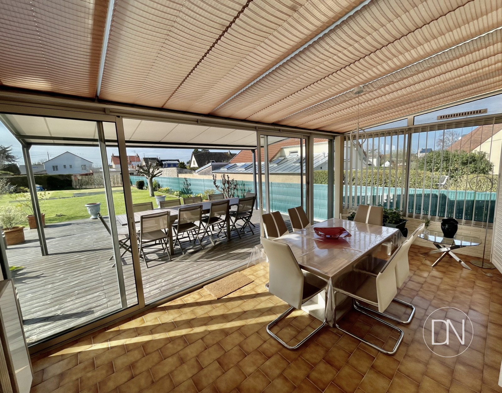 Située dans une petite station balnéaire prisée de la Côte de Nacre, maison des années 80 avec jardin, à quelques pas de la mer, Côte de nacre, Calvados (14), à vendre.