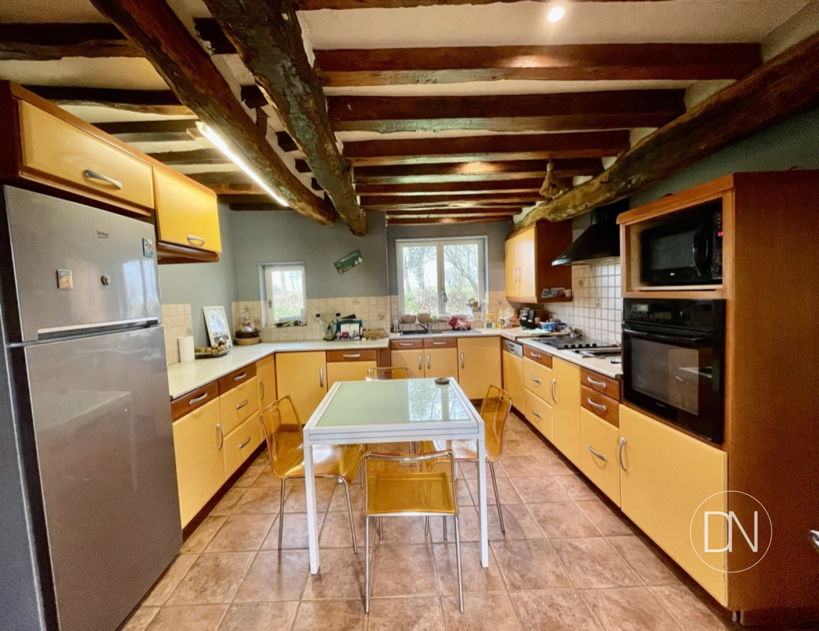 D'une surface habitable d'environ 180 m2, elle propose au rez-de-chaussée: Un vestibule d'entrée donnant sur la cuisine, une pièce de vie de 41 m2 avec cheminée, un local technique, une petite salle d'eau avec wc. À l'étage, pièce palière distribuant 2 chambres, une salle d'eau et wc. Terrasse bois. Le terrain, en partie arboré (clos masure) s'étend sur 5168 m2 sur lequel se trouve un garage. La maison est idéalement située à 5 min en voiture des plages de Saint Aubin/Mer et Veules les Roses, 14 min à vélo. Commerce dans le village et commerces et tous services à Veules les Roses et Saint Valéry en Caux. Gare SNCF - ligne Paris-le Havre (Yvetot) à 31 km soit 35 min, Paris à 2 heures. La maison nécéssitera des travaux de rafraichissement et de réaménagements intérieurs. Située sur un secteur très recherché, cette maison sera l'occasion de concrétiser un projet de résidence secondaire à la mer. elle conviendra parfaitement aussi en résidence principale.