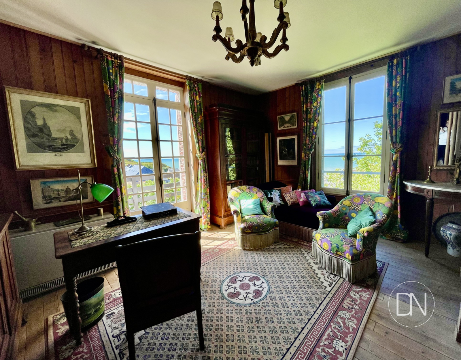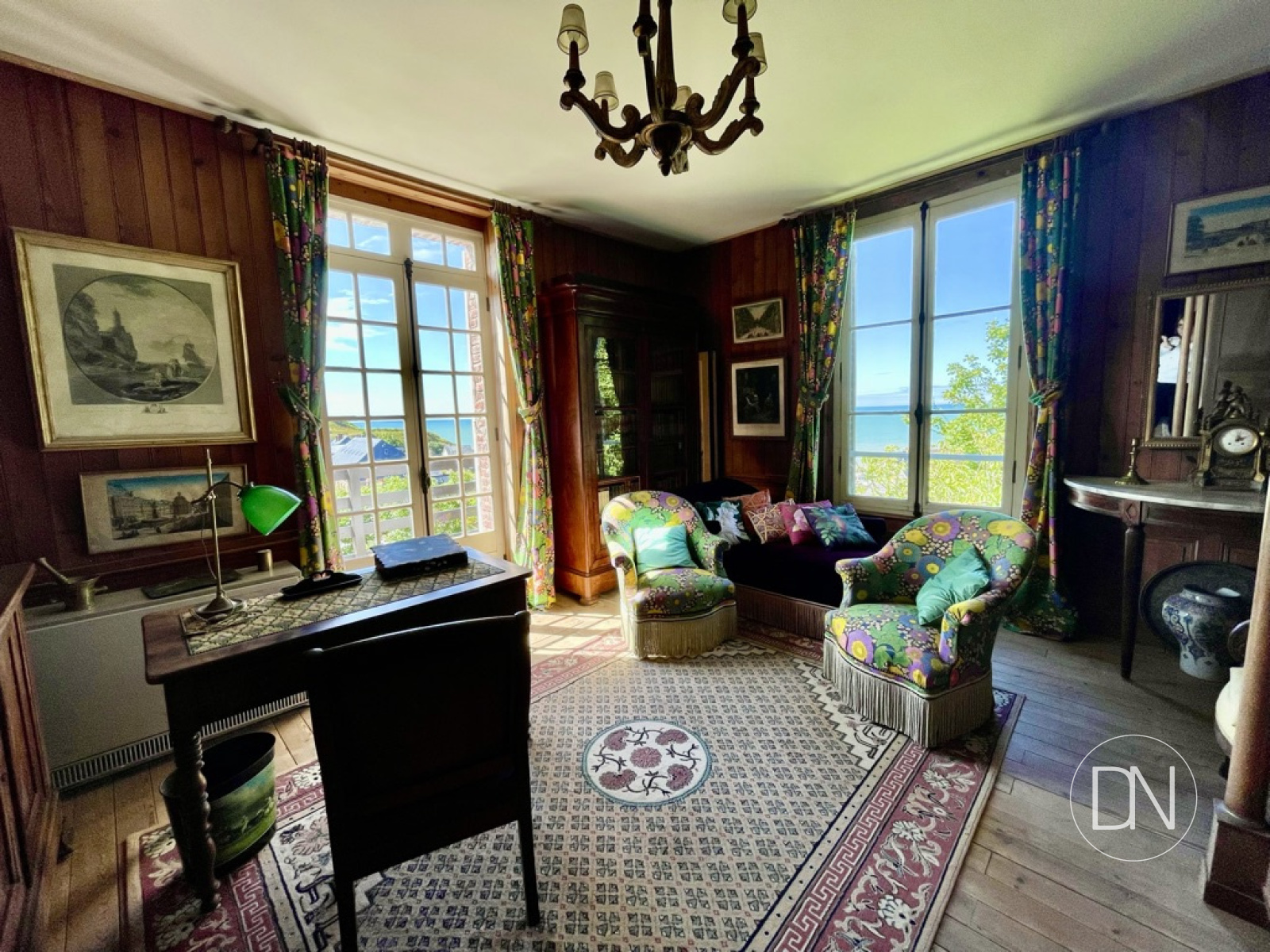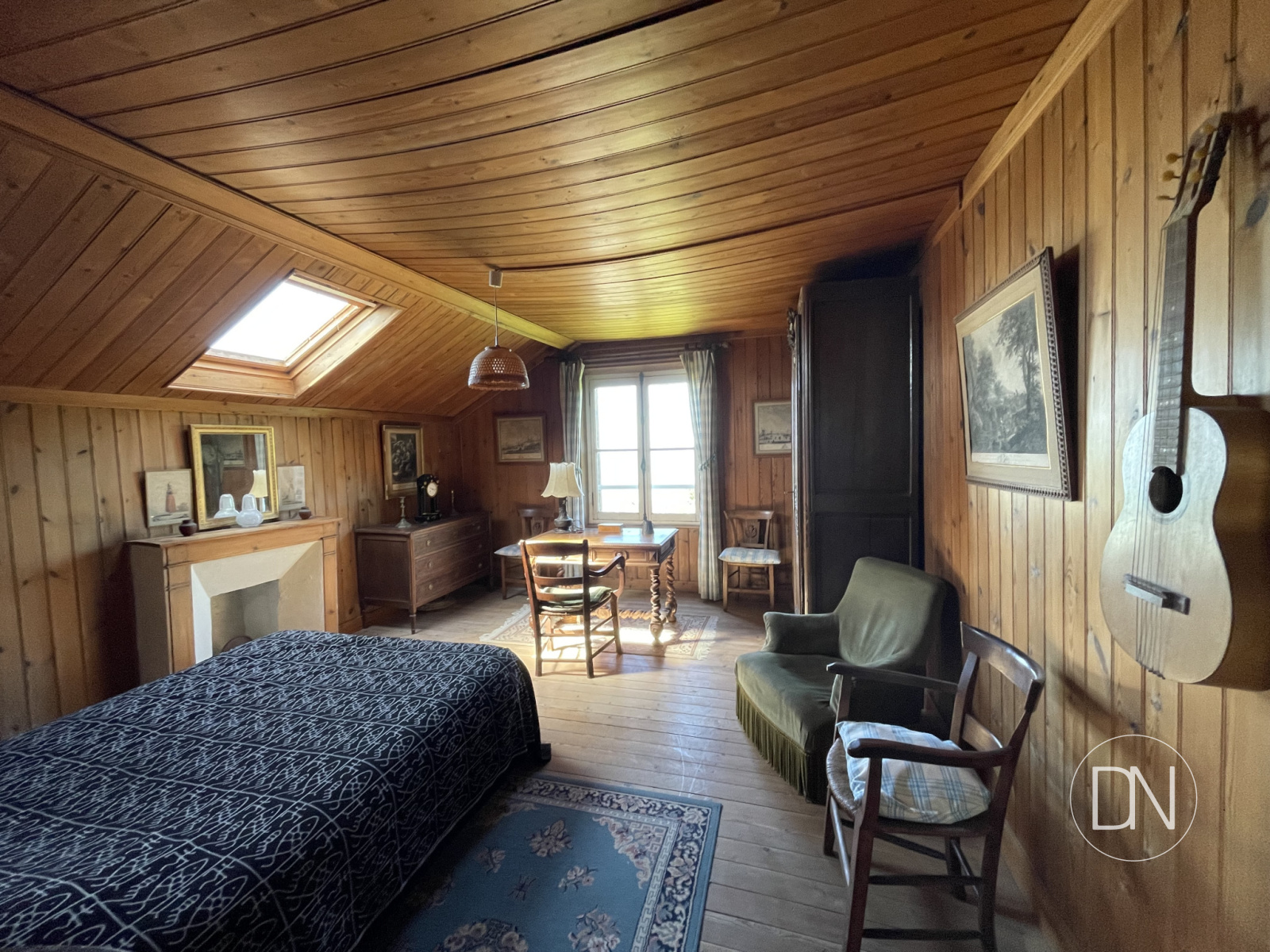 vue mer, lambris aux murs, cheminée,