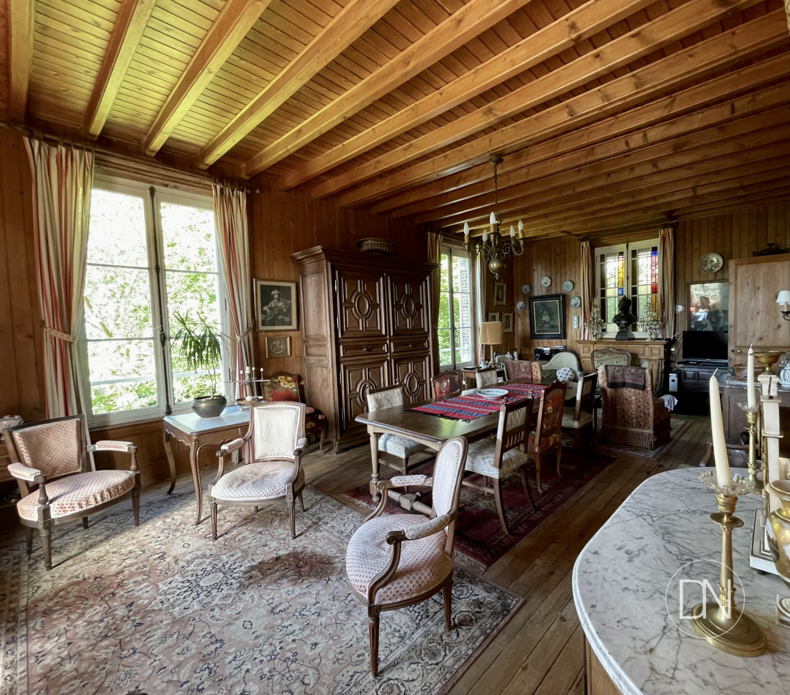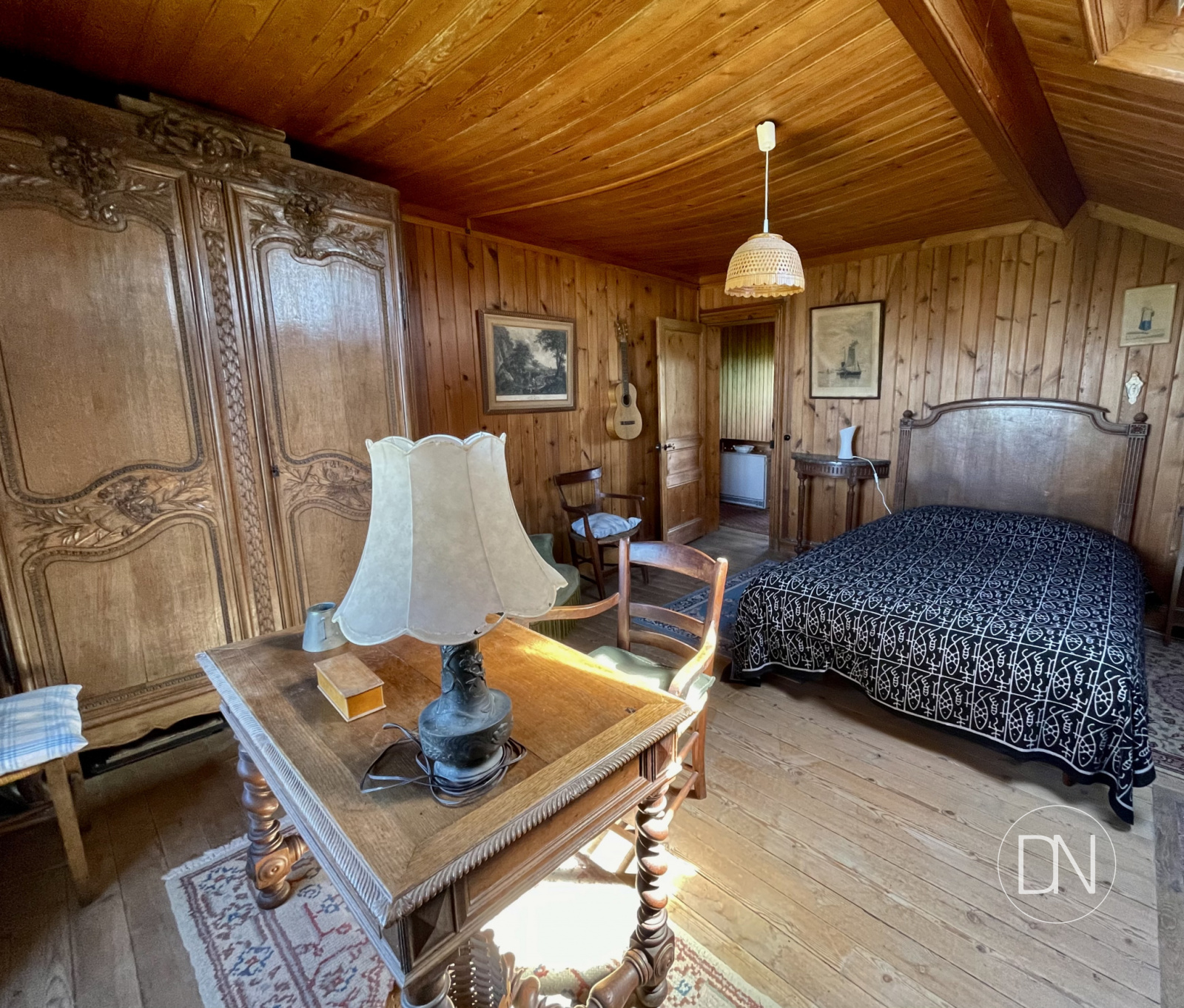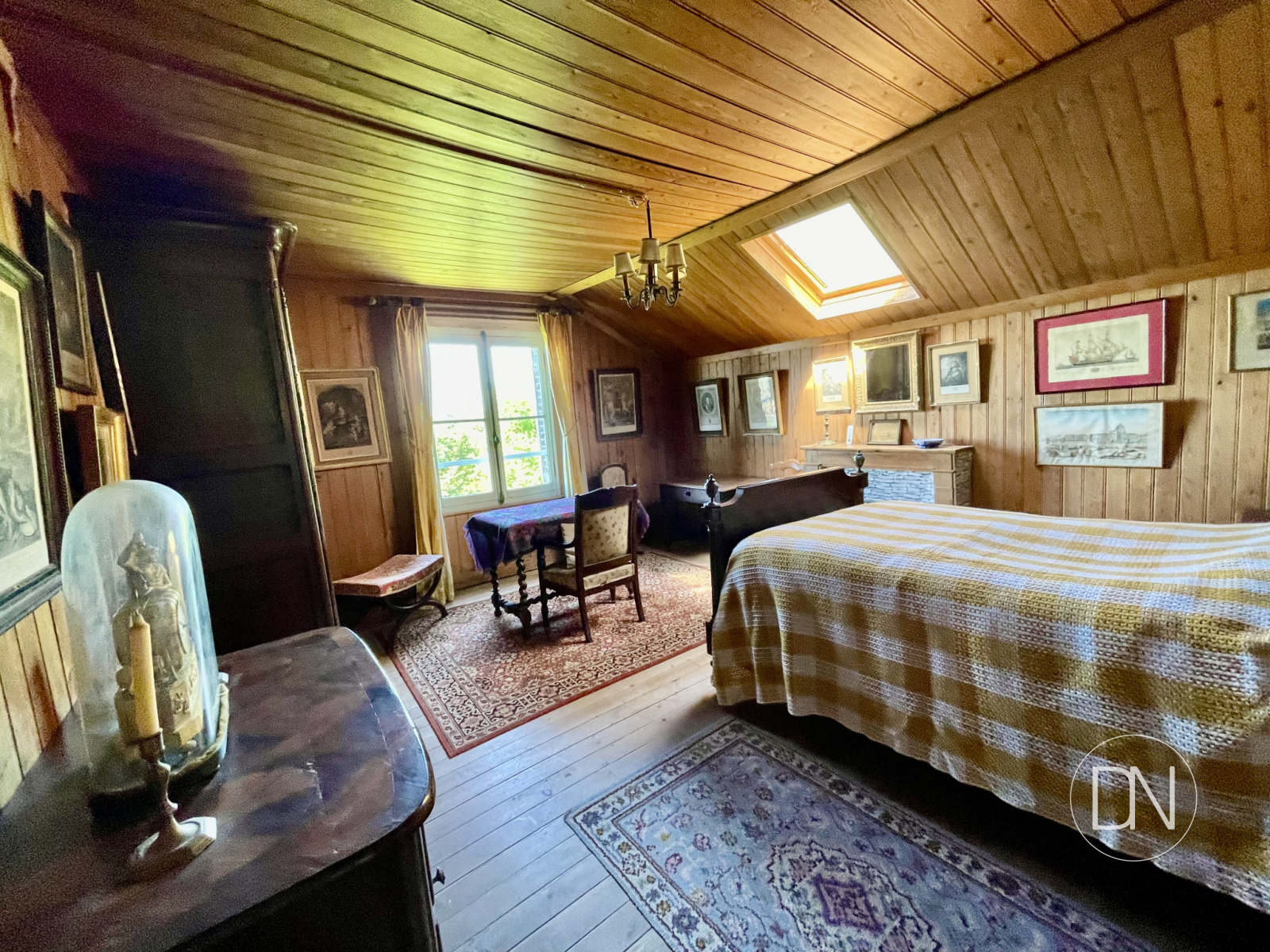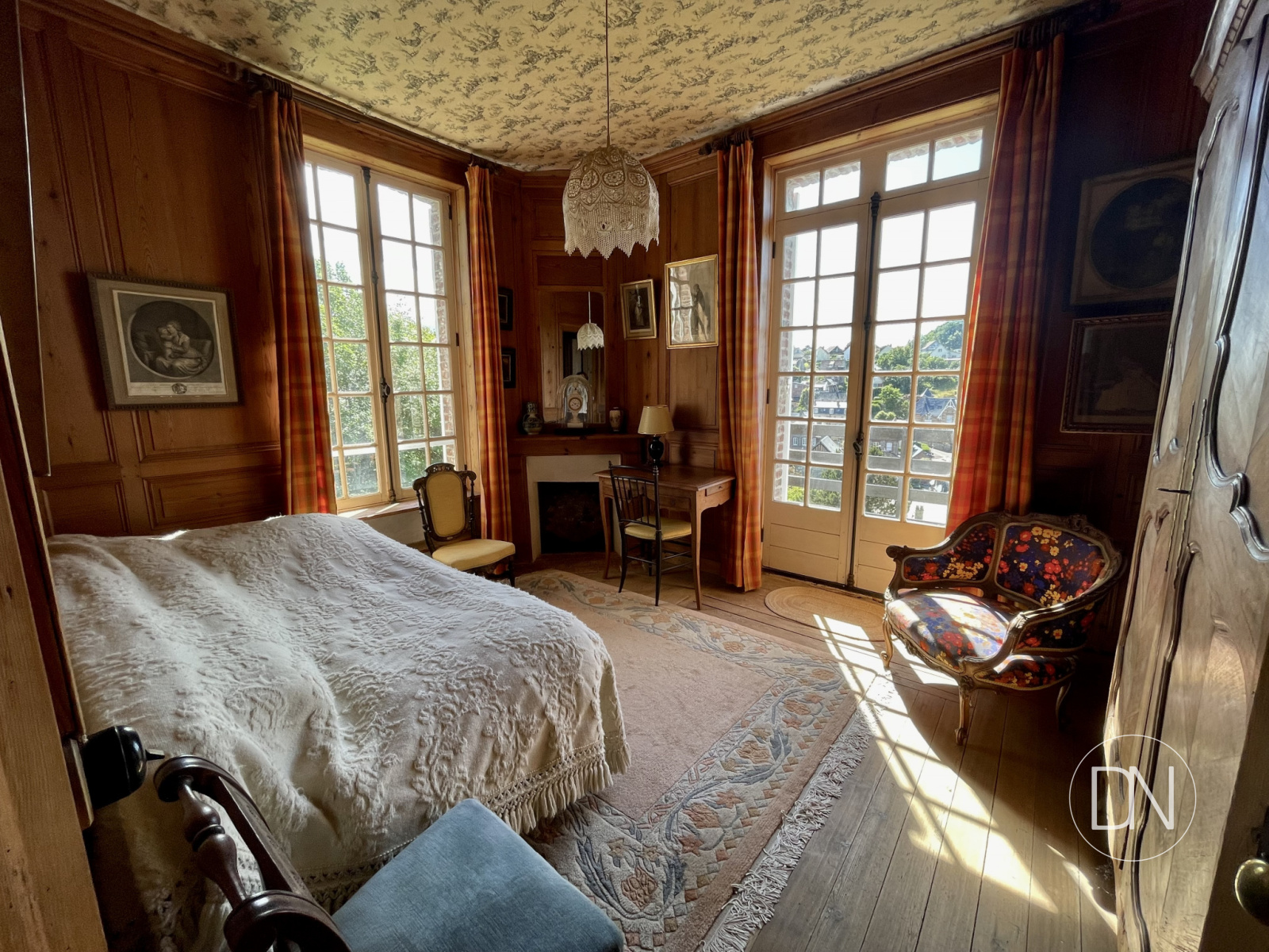 vue mer, lambris aux murs, cheminée,