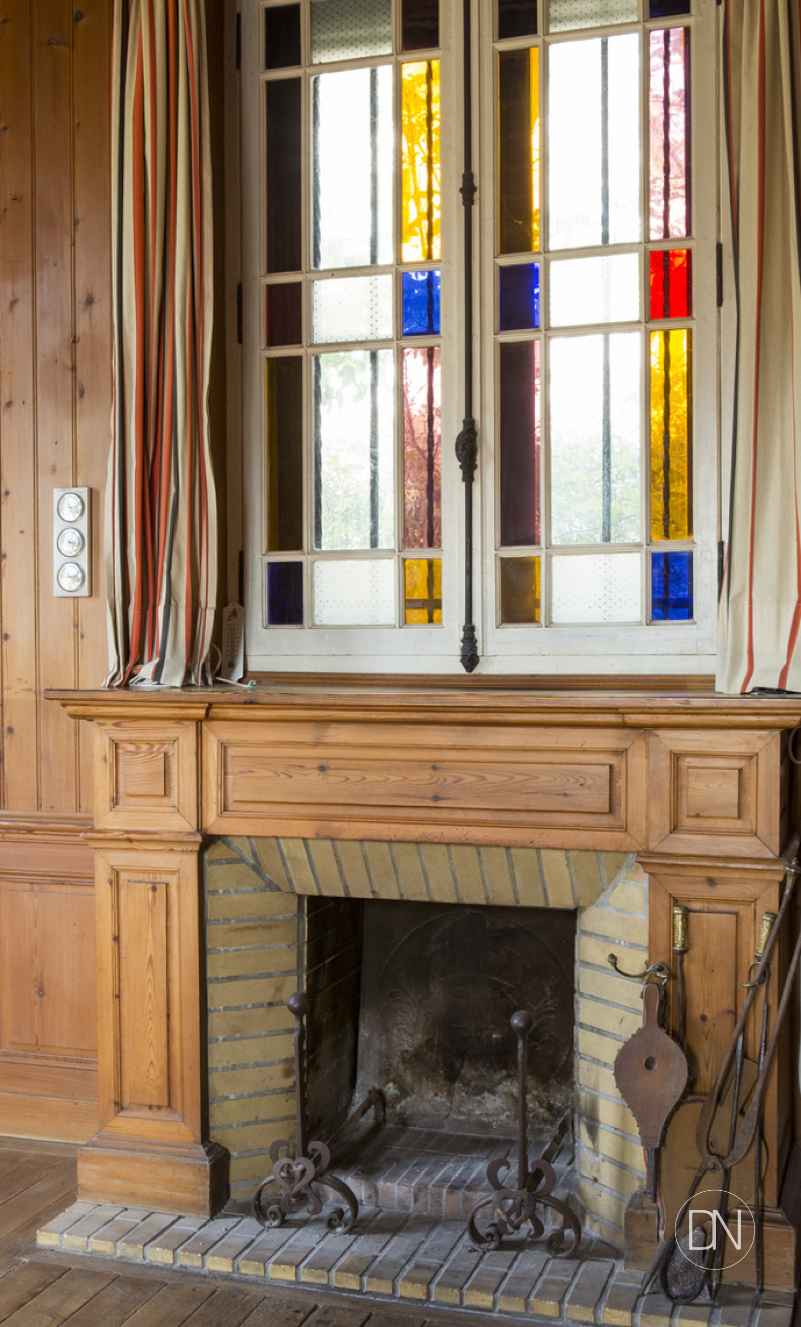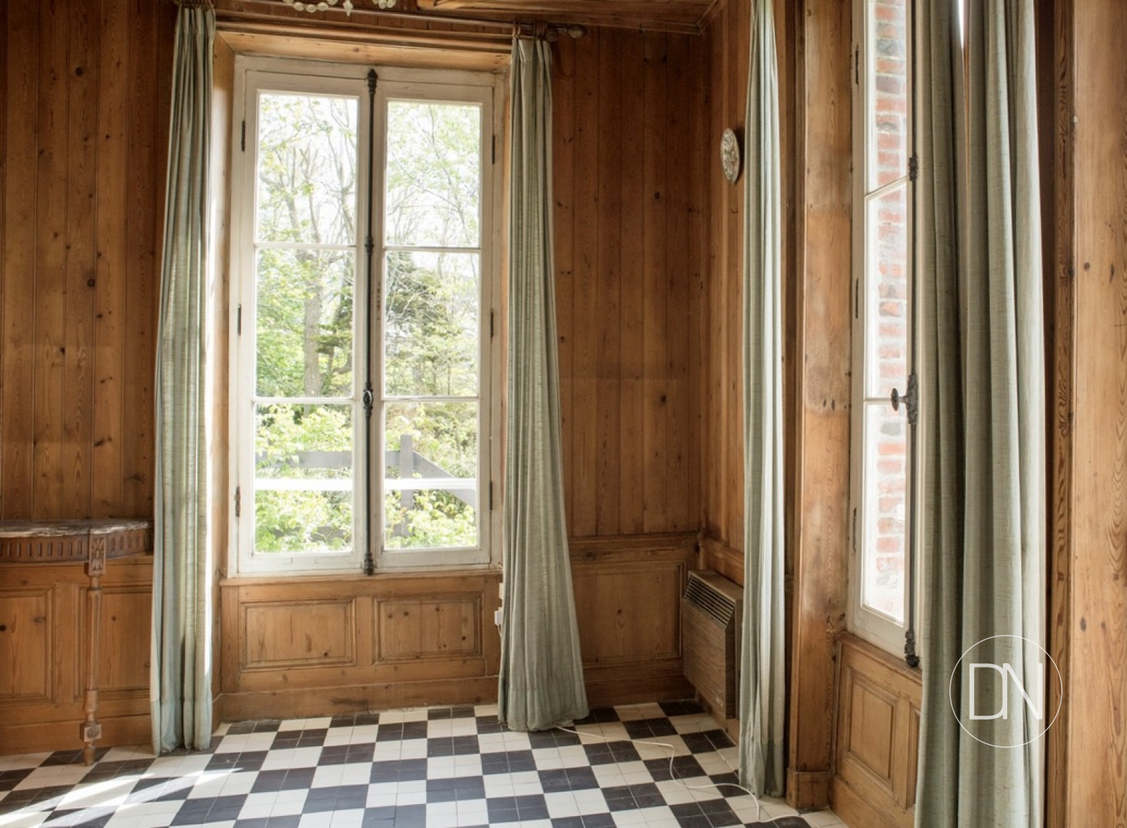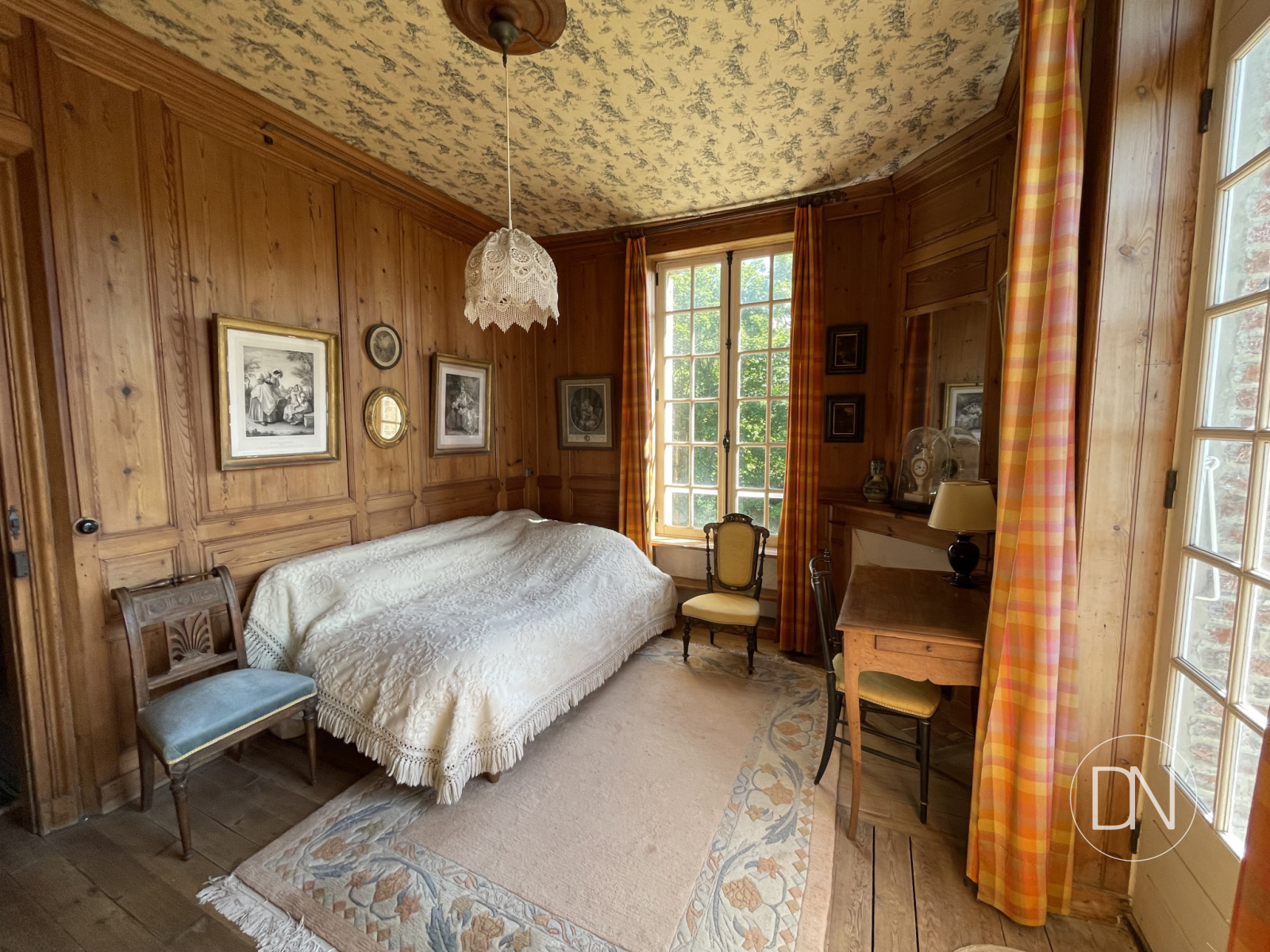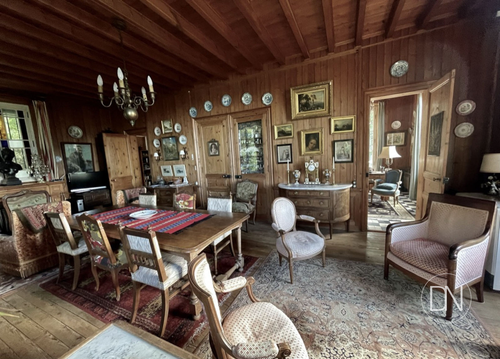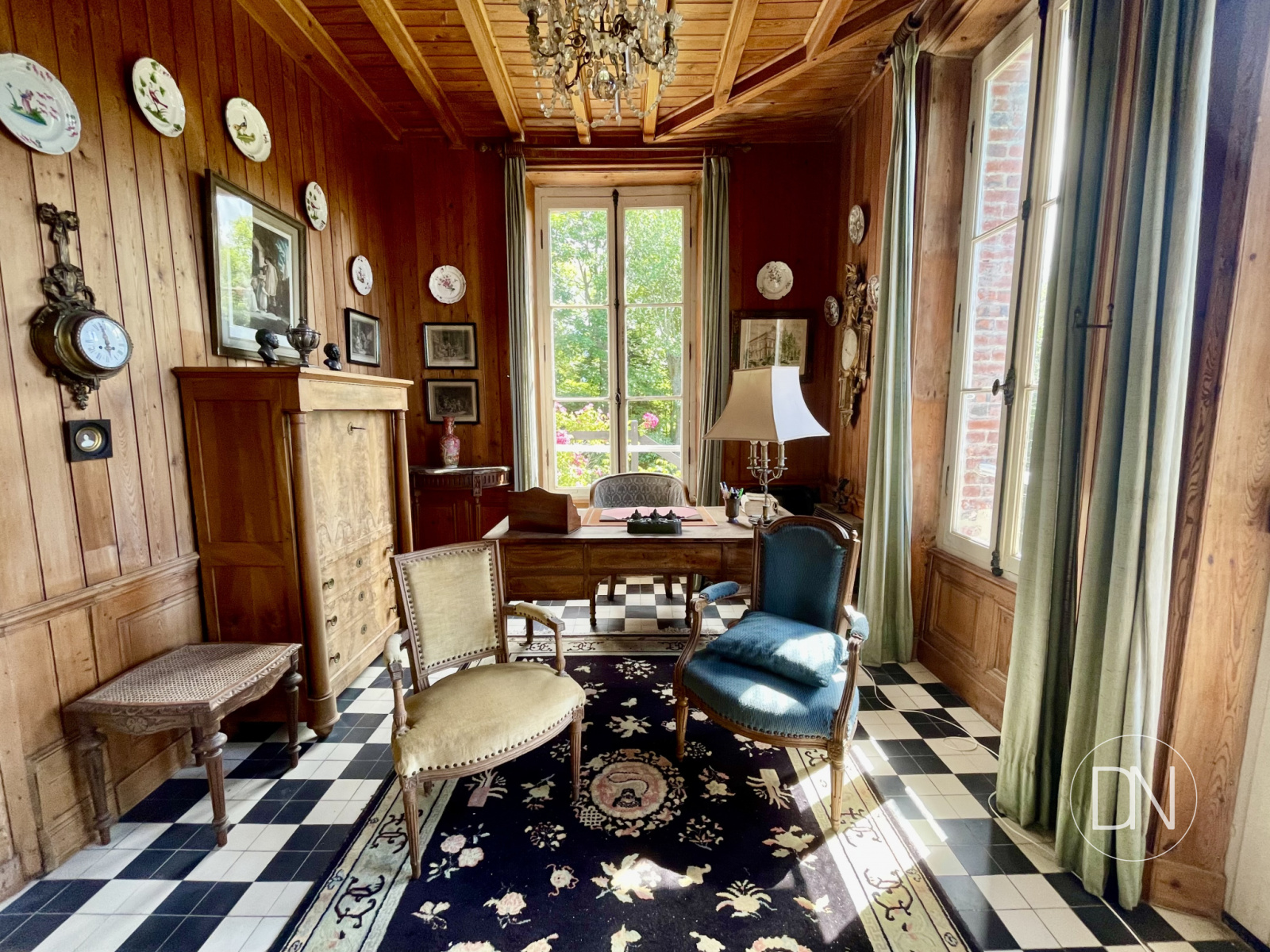 parquet, lambris aux murs et cheminée