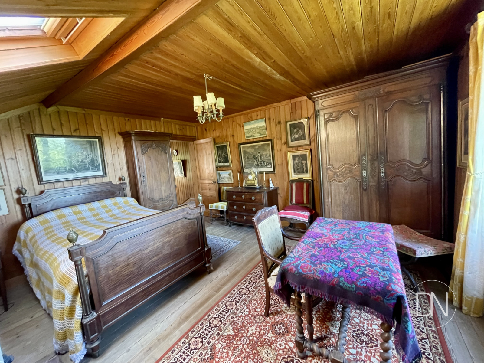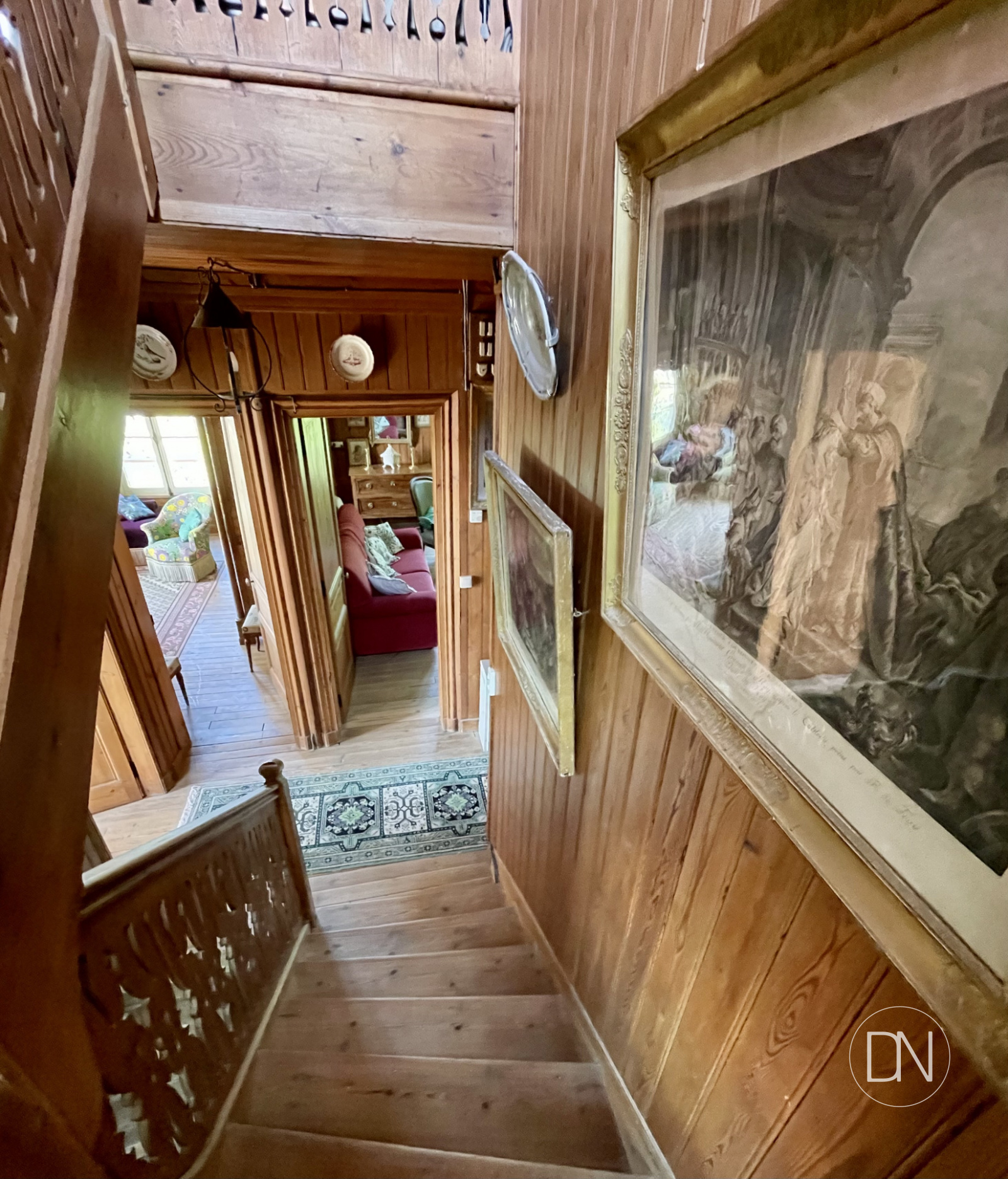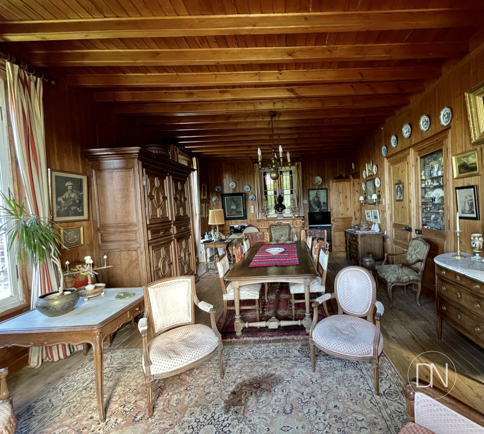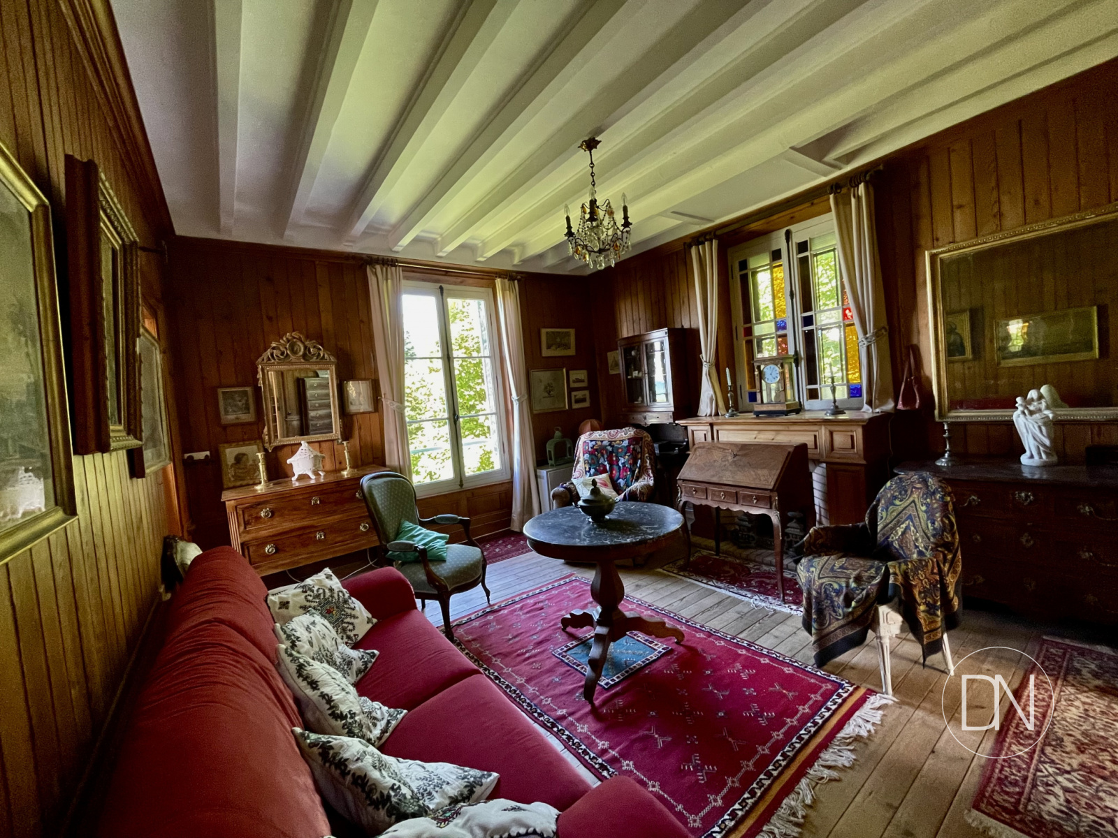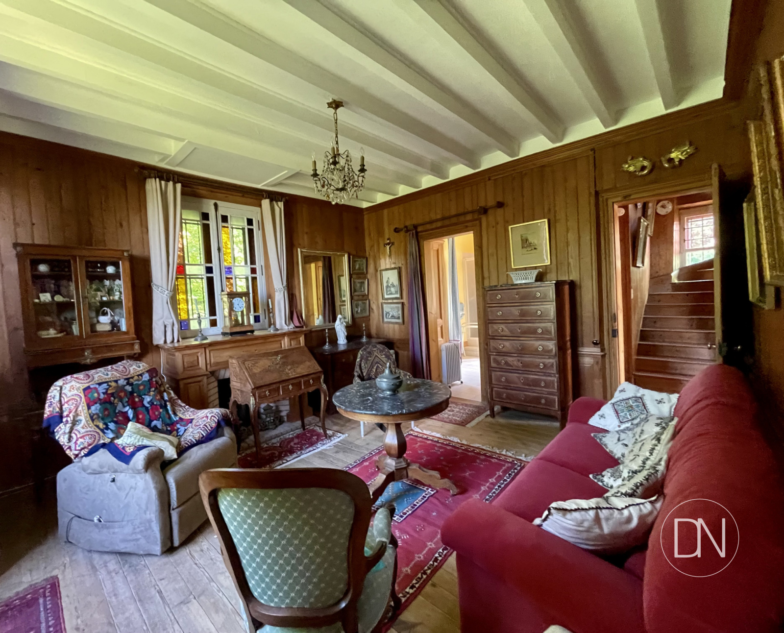 parquet, lambris aux murs et cheminée