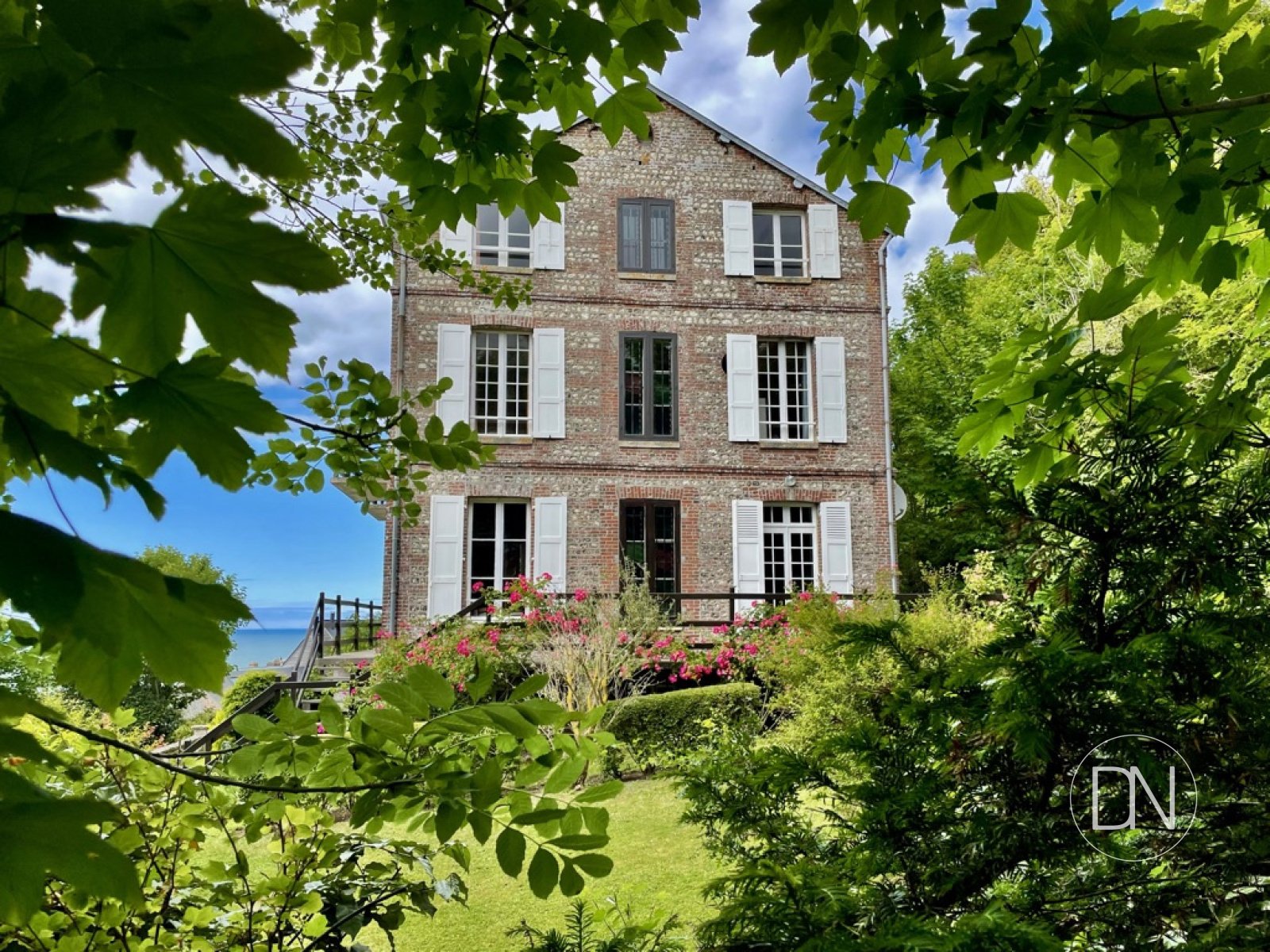 Le charme des villas balnéaires de la seconde moitié du 19ème siècle prend tout son sens avec cette maison d'environ 230 m2, en brique et silex, construite probablement en 1868 qui s'entoure d'un parc joliment paysagé et arboré. De la propriété, qui surplombe le village de Veules-Les-Roses, on profite pleinement de la vue sur la mer. La demeure est un concentré de la vie et de l'architecture bourgeoise en Pays de Caux au 19ème siècle. Ce qui fut, à l'origine, une résidence secondaire est aujourd'hui une résidence principale parfaitement entretenue à l'année. La maison est lumineuse grâce à ses nombreuses fenêtres permettant une lumière traversante. Elle est aussi au calme, loin de toute nuisance sonore et visuelle. Le rez-de-jardin de la maison correspond à ce qui fut autrefois l'office. On y trouve 2 pièces, 1 buanderie et des toilettes. On accède aux 1er niveau de la maison par quelques marches. L'entrée distribue un grand séjour-salon avec cheminée et une cuisine. Par un escalier on accède aux 2 autres niveaux de la maison. Le 2ème étage dessert 3 chambres dont 2 utilisées actuellement en bibliothèque et en petit salon et une salle d'eau avec wc. Au 3ème étage, 3 autres chambres et une salle d'eau avec wc. Des travaux de rafraichissement seront à prévoir aux niveaux des sanitaires et de la cuisine. Pour le reste, ce sera affaire de goût. Conserver l'esprit et le charme de la période Napoléon III ou lui apporter une note plus actuelle. Véritable écrin de verdure tourné vers la mer et surplombant un des plus beaux villages de France, le jardin de 2000m2 est assurément un autre point fort de la propriété. À quelques pas des commerces et de la plage, il s'agit d'un bien rare et exceptionnel qui parlera aux amoureux des villas balnéaires d'antan.
