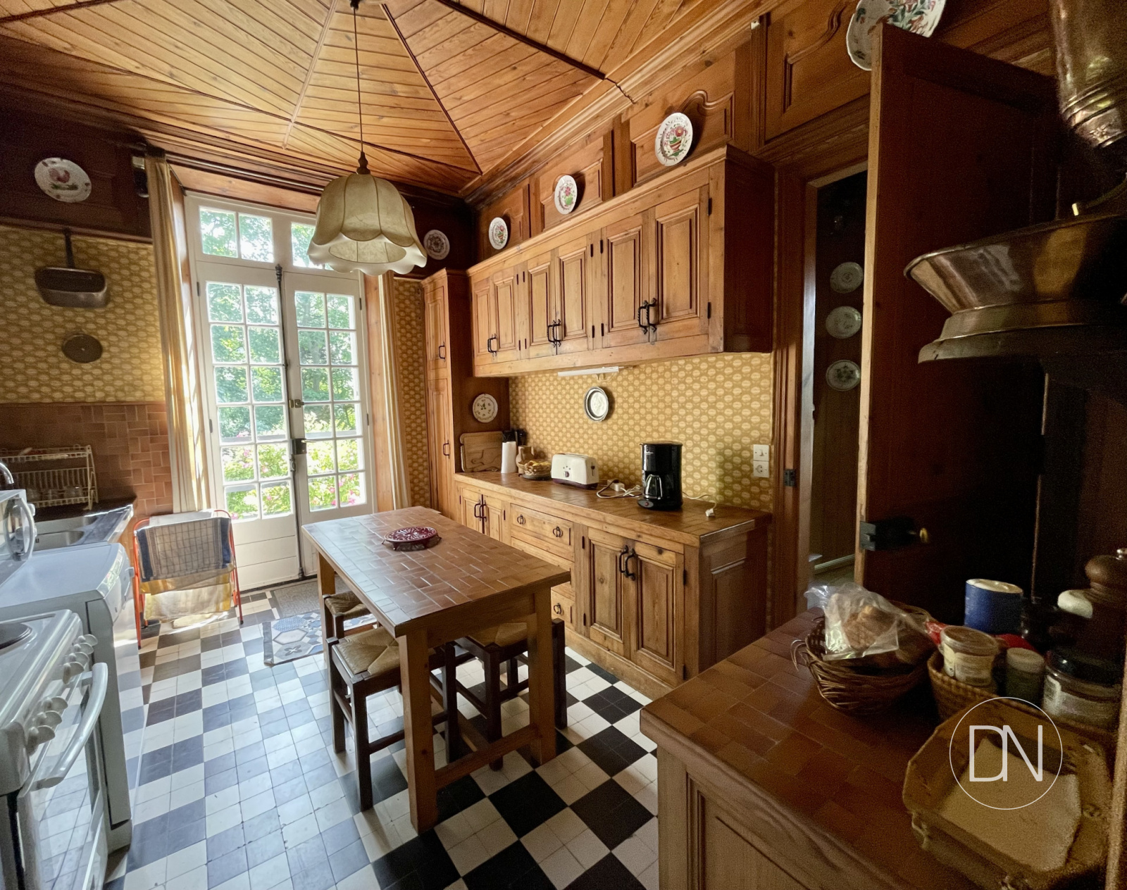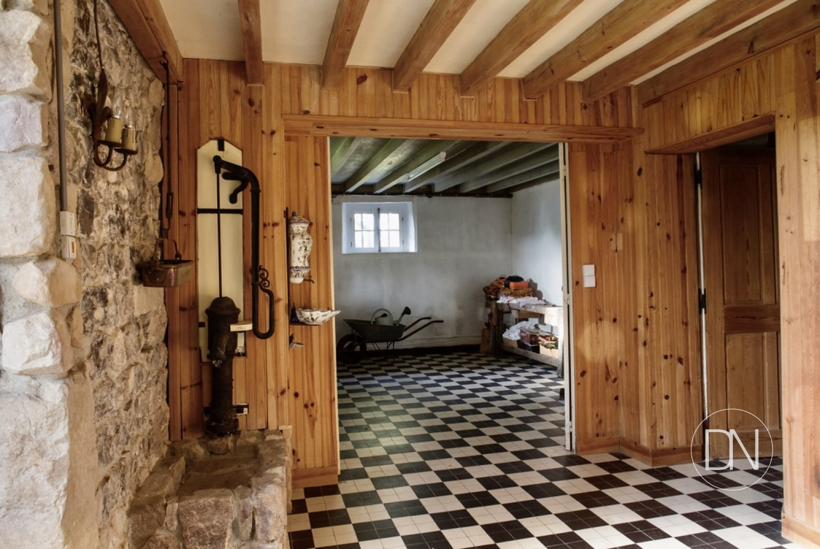 Pièce faisant office d'entrée en rez-de-jardin avec terrasse. Correspond aux anciennes offices de la maison