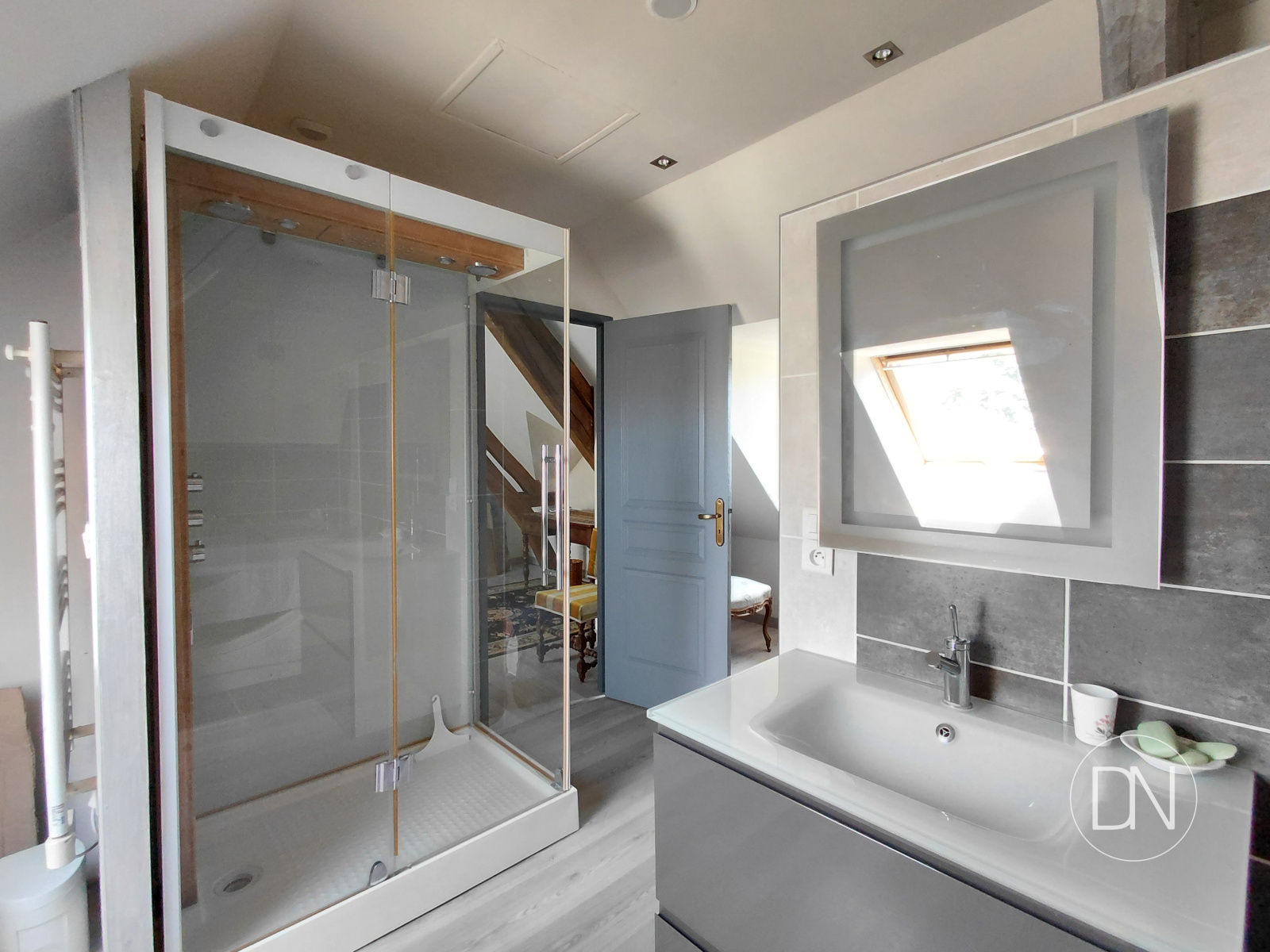 Probablement construite dans la 1ère moitié du 19ème siècle, cette jolie maison cauchoise en brique se niche au coeur d'un petit village, au calme, à moins de 30 min de la mer (Veules-les-Roses) et de Rouen. En parfait état de conservation, baignée de lumière grâce à son exposition plein sud et aux fenêtres traversantes, cette demeure propose un intérieur soigné et confortable. Sur une surface habitable de 240 m2, la maison s'ouvre, au rez-de-chaussée sur une entrée distribuant une salle à manger, une cuisine avec une cheminée-insert, une buanderie, une véranda pour profiter du soleil couchant, un wc, une salle de bains, un salon avec cheminée et sur l'aile droite de la maison un second salon avec au-dessus, une chambre. Au 1er étage de la maison un grand palier dessert deux chambres, avec possibilité de faire une salle d'eau et une chambre/bureau. Le 3ème niveau correspondant aux combles, distribue depuis le palier, une chambre avec salle de bains et wc. La maison s'entoure d'un agréable jardin (2900 m2) sur lequel se trouve l'ancienne écurie (41 m2), en partie aménagée, au rez-de-chaussée en garage (17,64 m2) et à l'étage, en logement d'environ 60 m2 avec une pièce de vie et un coin cuisine, une salle d'eau avec wc et d'un grand dortoir. Attenant à l'écurie, une extension abrite un deuxième garage (23,42 m2) . À la campagne, au calme, non loin des commerces et de tous les services (Yerville), proche des accès autoroutiers, une gare SNCF pour Rouen et Paris à 20 min (Yvetot), cette agréble demeure conviendra parfaitement à un projet de résidence principale comme secondaire, sans aucun travaux à prévoir.