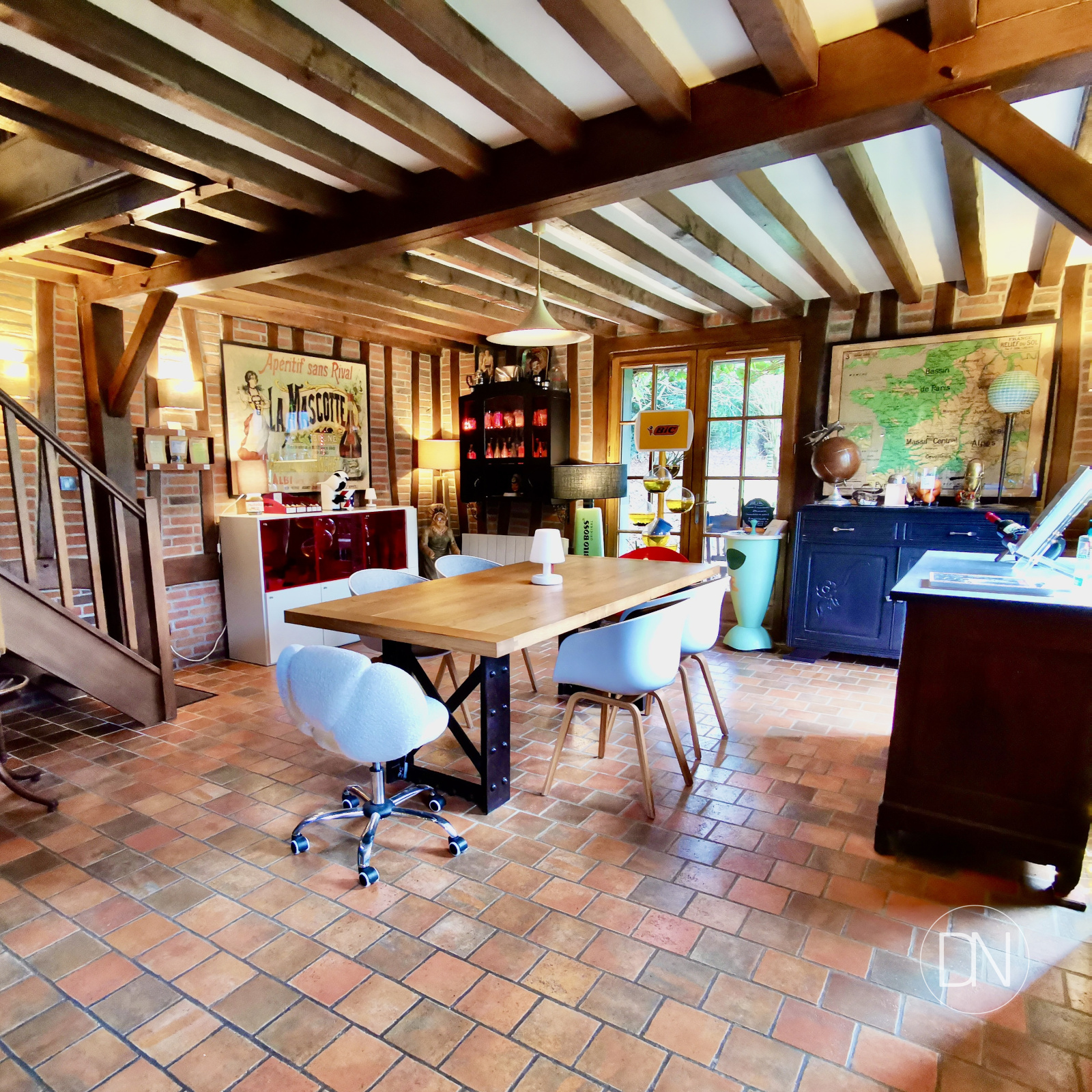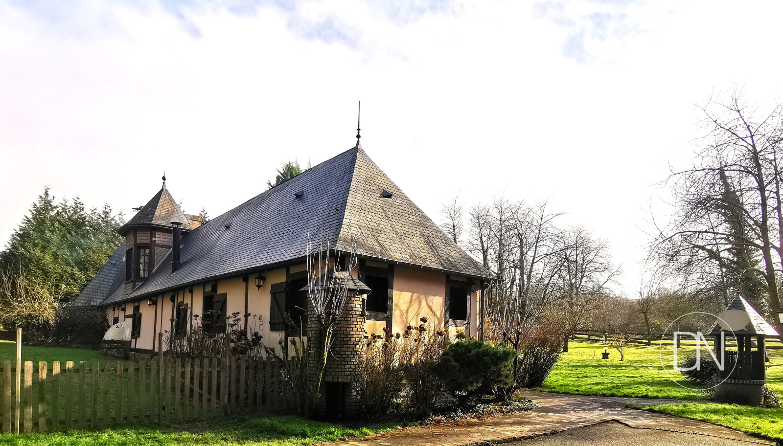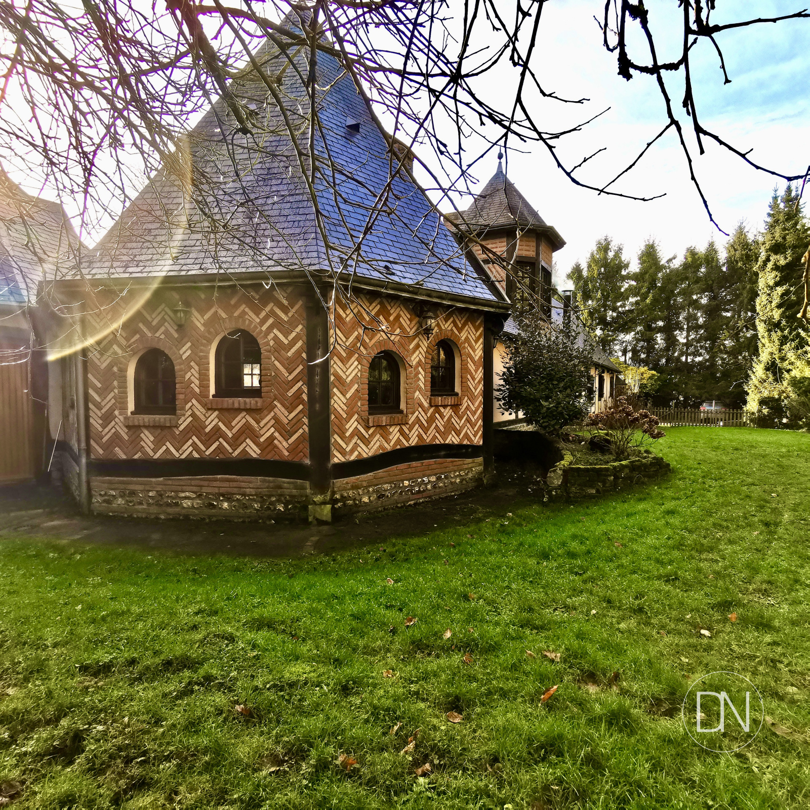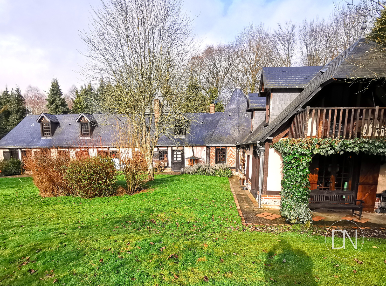 Lors d’une randonnée entre la vallée de la Varenne et la forêt domaniale des Eawy vous découvrirez le charme de cette propriété composée d'une maison normande en L et d'une longère de plain-pied, offrant au total 362 m² habitables. L'ensemble, entièrement rénové a conservé toute son authenticité, en apportant confort et modernité et de grands espaces de vie. La réhabilitation de la maison principale (257 m² habitables), et de sa dépendance (105 m²) s'est appuyée sur l'utilisation de matériaux de qualité, et d'idées originales comme cette tour et la pièce hexagonale conférant ainsi un cachet supplémentaire à la demeure..