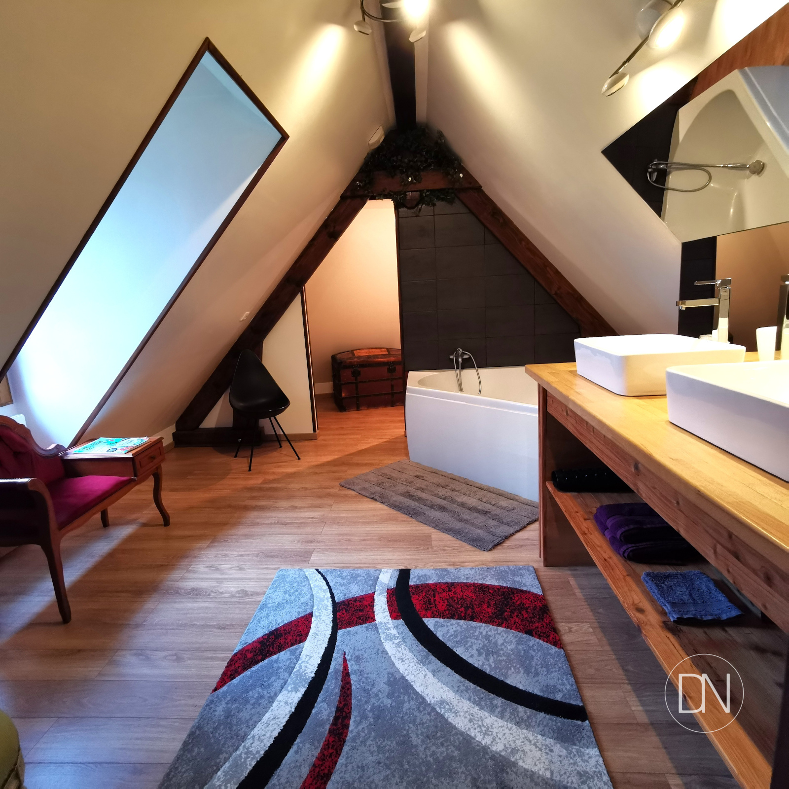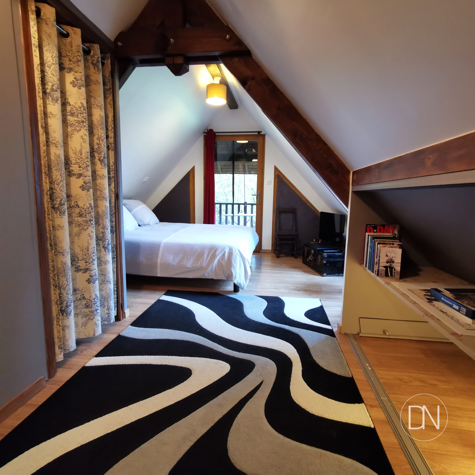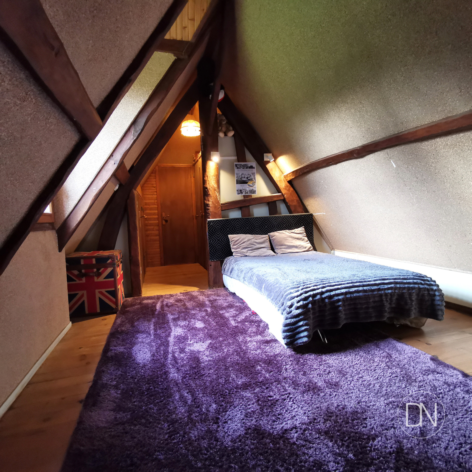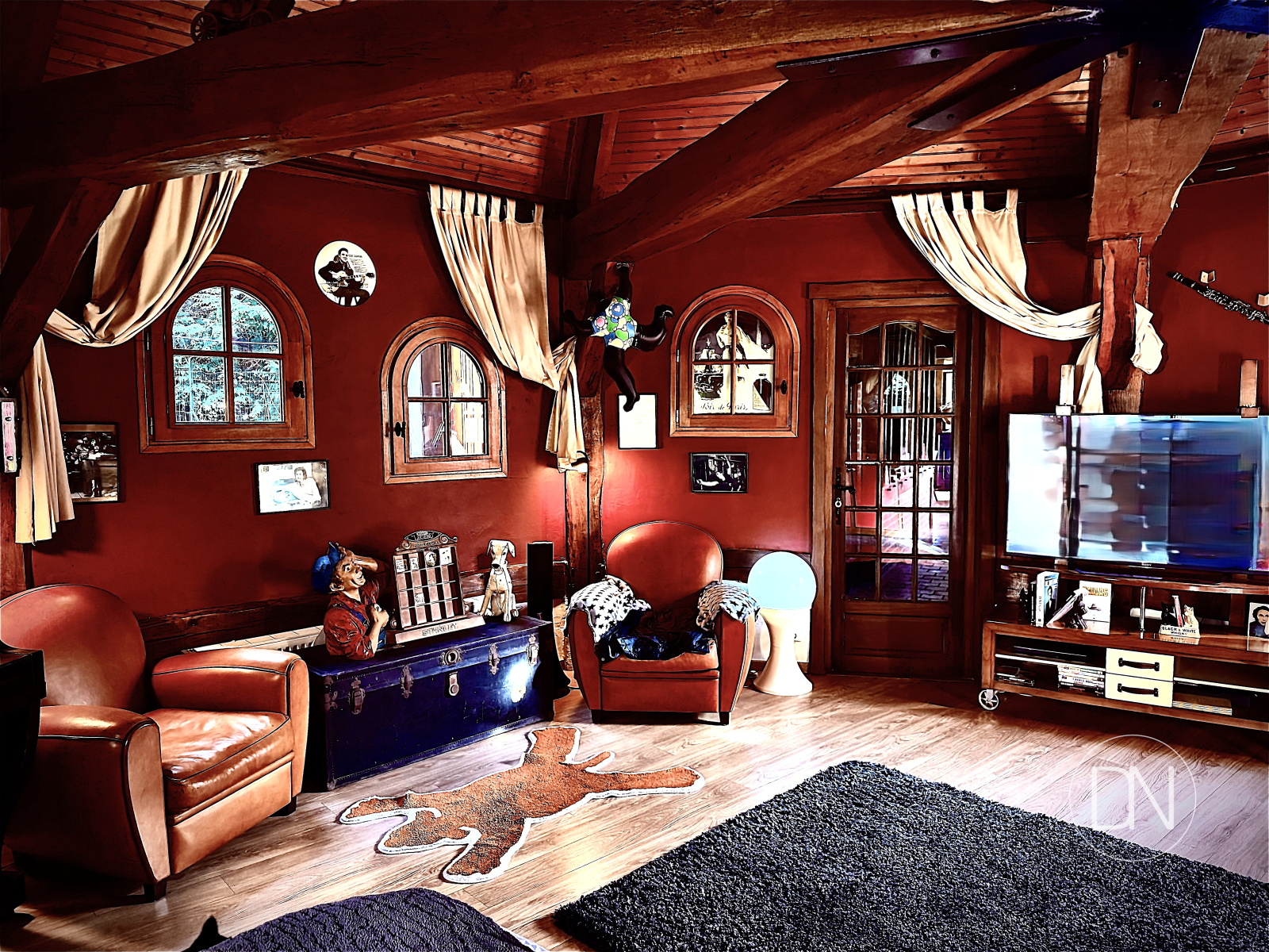 La propriété s'entoure d'un parc joliment paysagé et arboré sur 3000 m² avec un verger sur une prairie de 4000m², avec un accès direct dans la forêt. La maison principale, se compose de 2 longères qui ont été réunies par une pièce hexagonale. Le rez-de-chaussée se compose d'une entrée, de deux espaces de vie (139 m² au total), exposés Sud et Ouest, avec deux cuisines aménagées et équipées, un salon (pièce hexagonale de 36 m²) avec une cheminée équipée d’un insert, d’une salle à manger ouverte sur la cuisine, une seconde salle à manger avec un poêle à bois, d'un salon de 20m² avec une cheminée ouverte avec four à pain. Un dégagement, une buanderie, une salle de bains et 2 WC complètent ce niveau. Au 1er étage un palier dessert 2 chambres et une suite parentale (34m²) avec salle de bains et WC et un balcon sous la queue de geai.