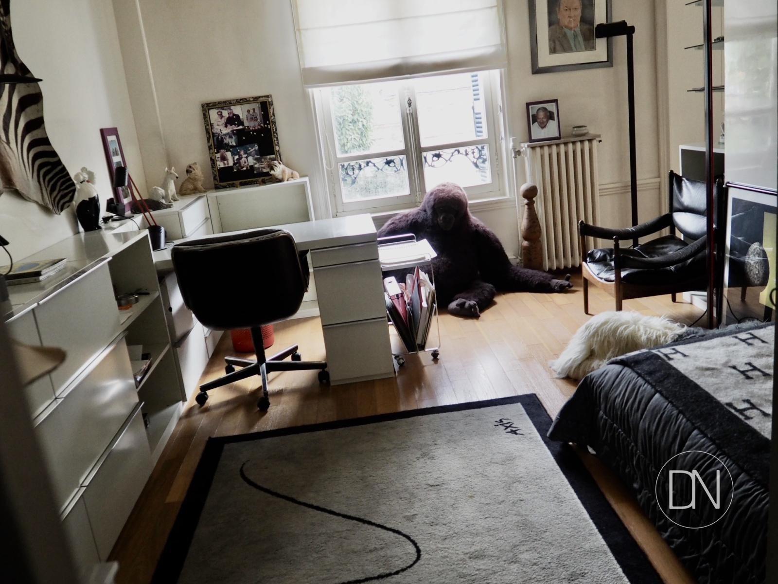 Chambre/bureau avec cheminée, placard boiserie, parquet