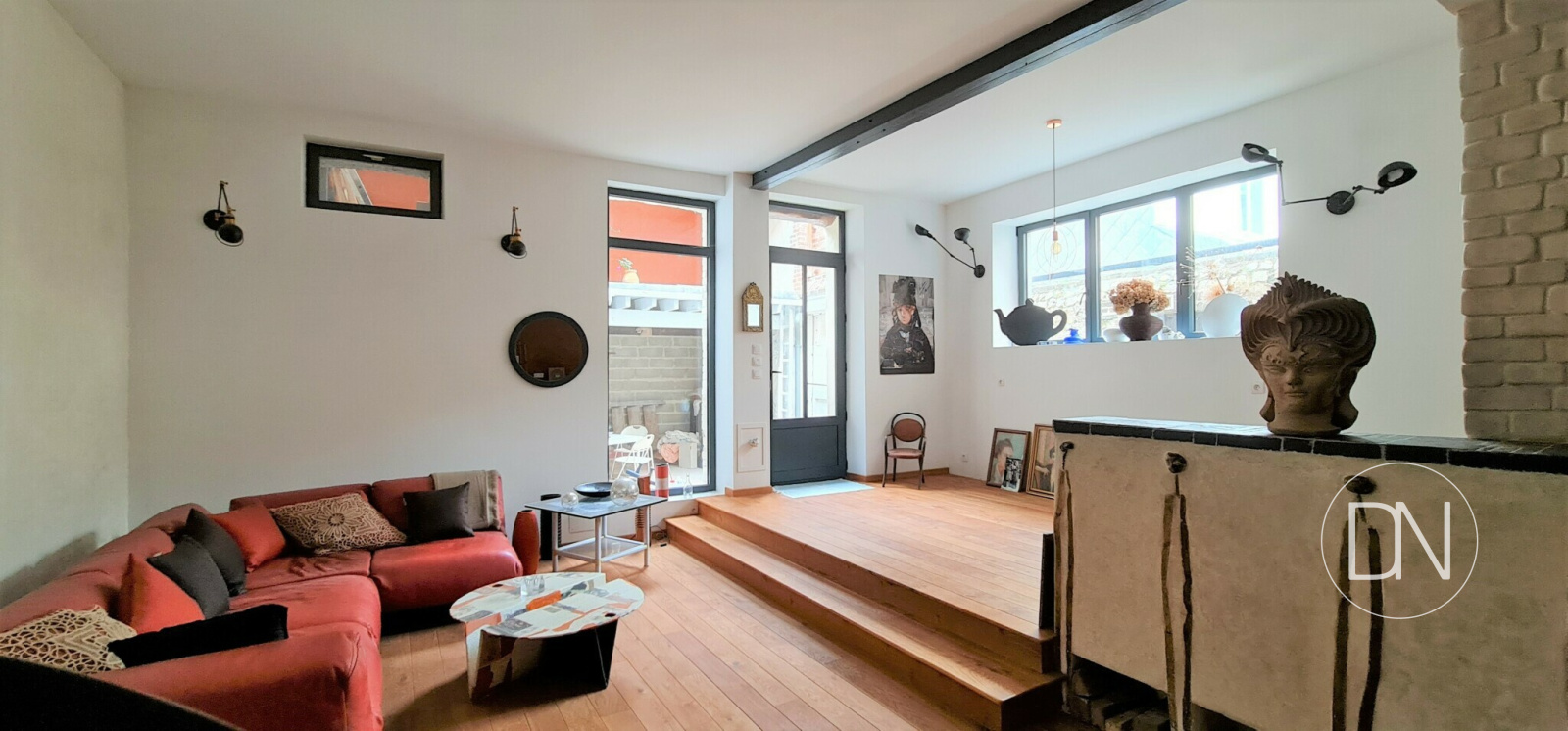 En plein cœur de Fécamp, maison avec atelier d'artiste, Côte d'Albâtre, Seine Maritime (76), à vendre. Cette maison atypique d'une surface habitable d'environ 236 m2 offre de multiples possibilités. Elle propose au rez-de-chaussée une grande entrée actuellement convertie en galerie d'art , une cuisine et un espace séjour/ salle à manger d'environ 55 m2 donnant sur une cour de 40m2 .Depuis la cour, on accède par un escalier à une coursive de 26 m2 avec un accès indépendant à une chambre. 1er étage: 2 chambres et une salle d'eau . Au 2ème étage: Pièce de vie avec salle d'eau et chambre. À quelques pas de la mer, cette maison atypique et pleine de charme peut répondre à différents projets tant en résidence principale que secondaire. Elle offre un joli potentiel d'exploitation pour de la location saisonnière ou une activité de chambres d'hôtes. Si vous avez une âme d'artiste, l'atelier sera un plus. À découvrir.