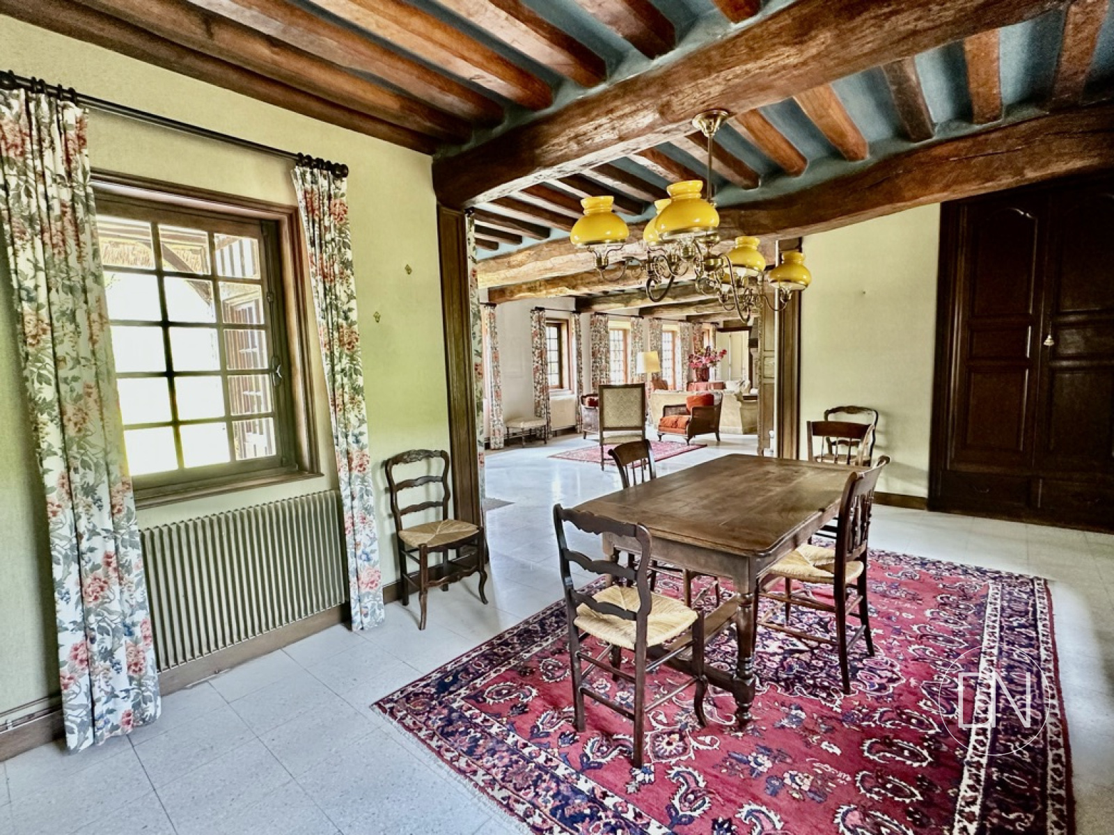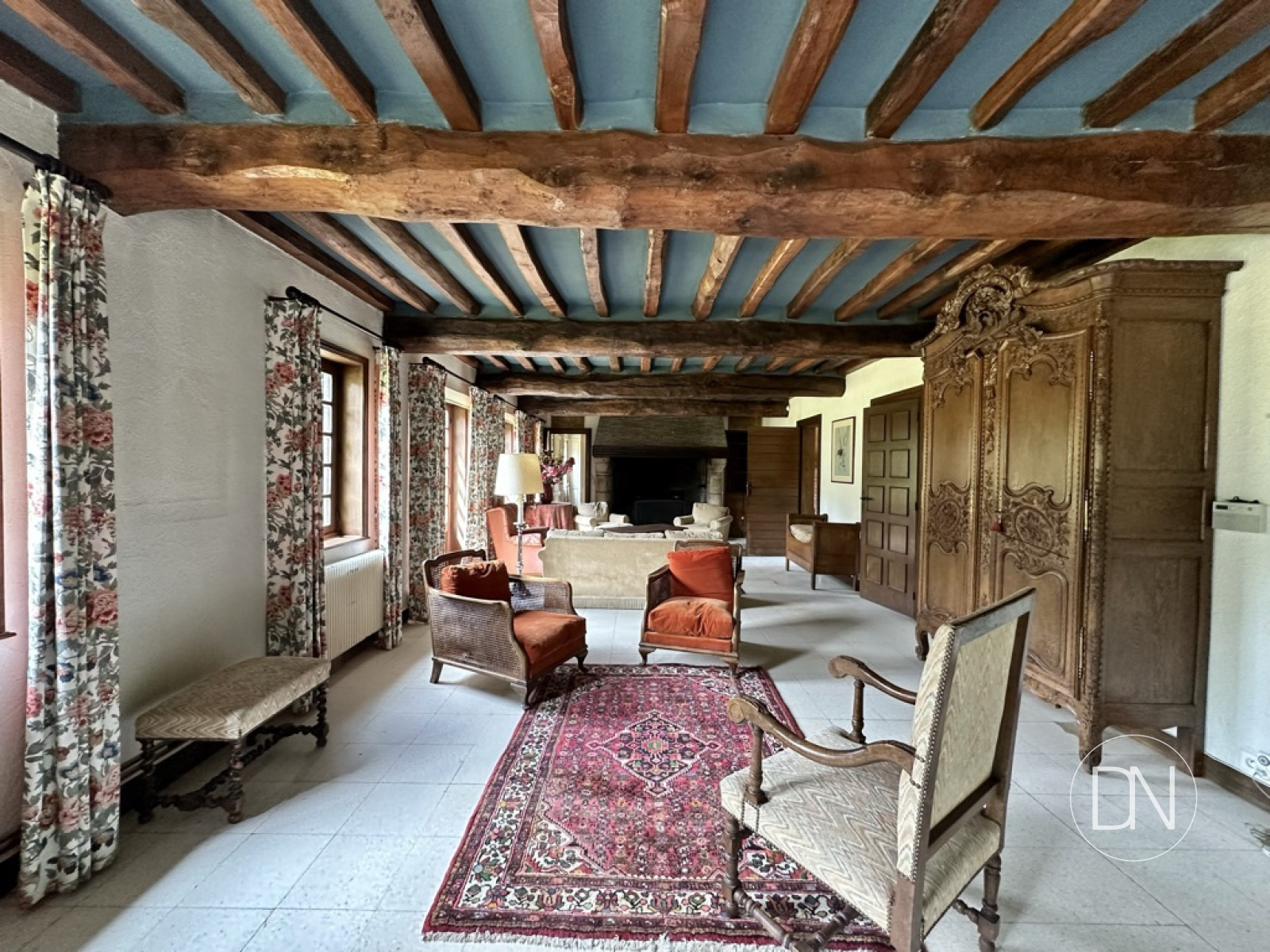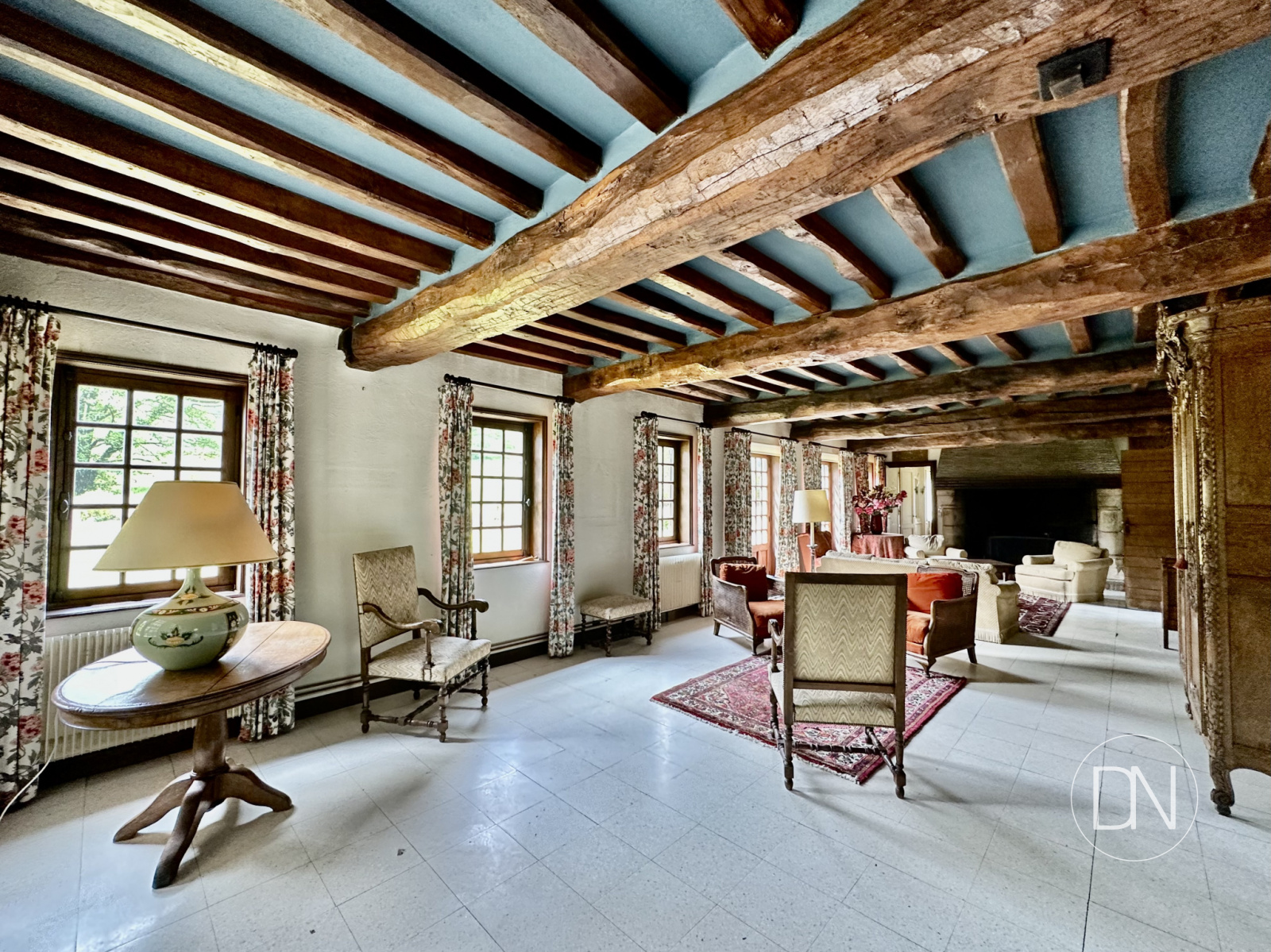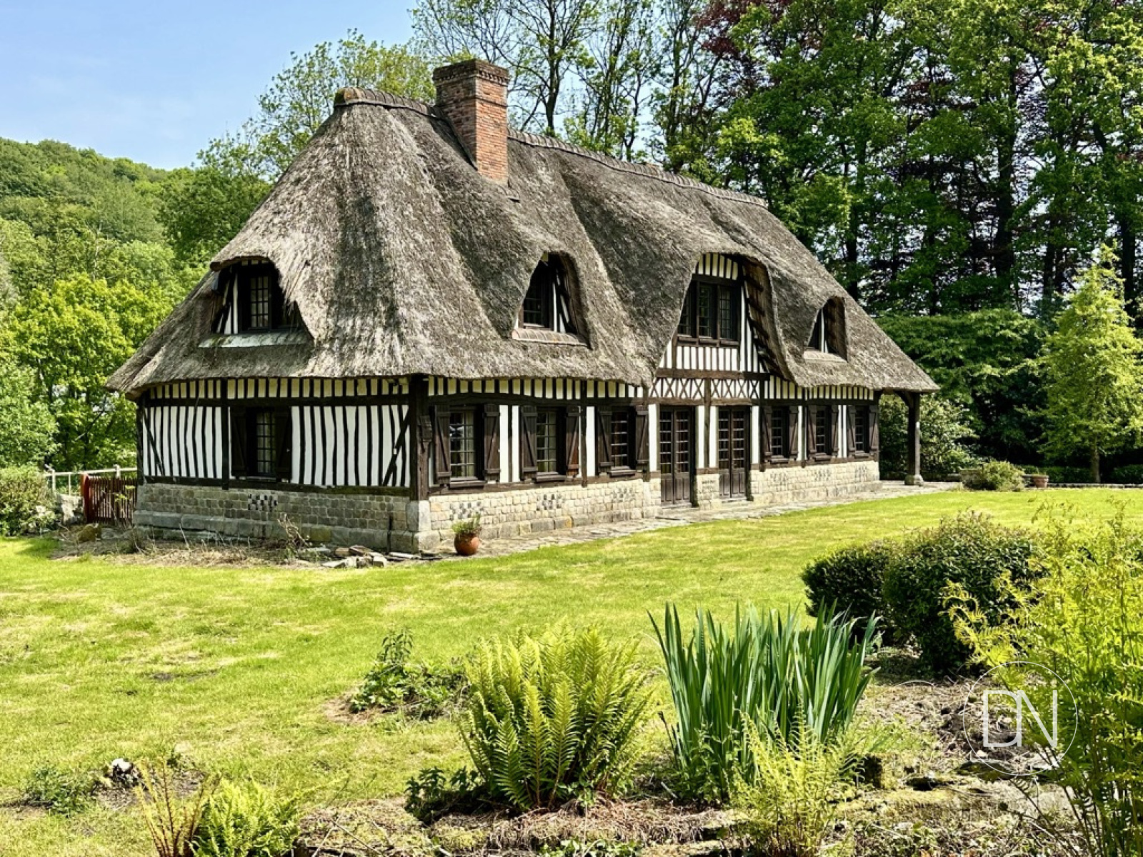 Cette propriété doit son caractère exceptionnel à son environnement préservé et sauvage. Bois, prairies, sources sont les acteurs d'un paysage bucolique sur lequel fut bâtie cette gentilhommière en 1960. Elle fit "la une" des magazines de l'époque tant elle est représentative d'un patrimoine architectural cauchois d'exception. La chaumière, d'une surface habitable de 300 m2, est ouverte de toute part sur le jardin et la nature. Une vaste pièce de réception, d'environ 75 m2 avec sa superbe cheminée, constitue le point fort du rez-de-chaussée qui bénéficie aussi d'une chambre avec salle de bains. Au même niveau, on trouvera des toilettes visiteurs ainsi qu'une cuisine avec cheminée dont le caractère "vintage" ne manque pas de charme. Depuis la cuisine, on accède à une terrasse d'environ 100 m2 ouverte sur un paysage naturel. À l'étage, le couloir dessert 4 chambres, un cabinet de toilette, une salle de bains ainsi qu'une lingerie. Sous la terrasse, un rez-de-jardin de 77m2 a été aménagé dans un second temps, avec chaufferie, cave à vins, pièce de jeux et bureau. À proximité de la maison se trouve la piscine, avec son pool house, alimentée par l'eau des sources. Sur ce grand domaine de 3,8 ha se dressent un ancien moulin au bord de la Ganzeville, une dépendance comprenant écurie, garage, grange et bûcher et enfin une maison de caractère. Des travaux de rafraîchissement pour la maison et de réhabilitation pour les dépendances seront nécessaires. C'est un coup de coeur pour cet ensemble où le patrimoine architectural est en totale communion avec la nature. À 7 km de Fécamp qui offre tous commerces et services avec une gare SNCF desservant Paris, à 15 min des plages d'Yport et de Fécamp. Cette propriété conviendra aussi bien en résidence principale que secondaire. Elle s'adresse avant tout aux amoureux d'espace naturels sauvages.