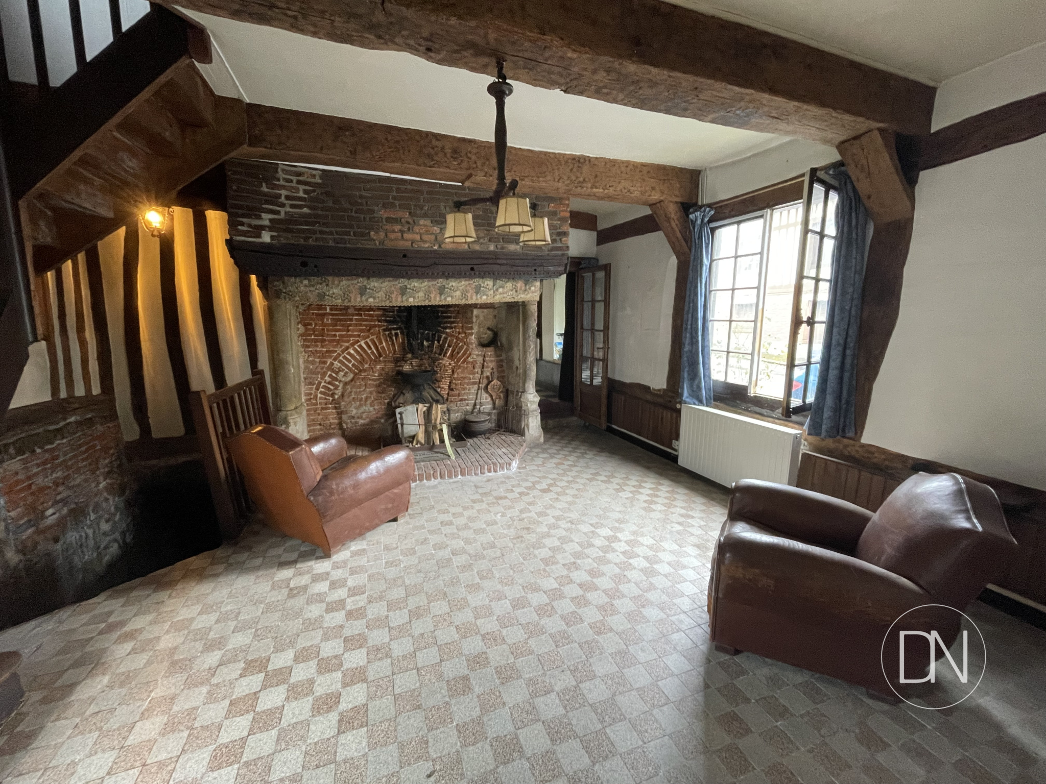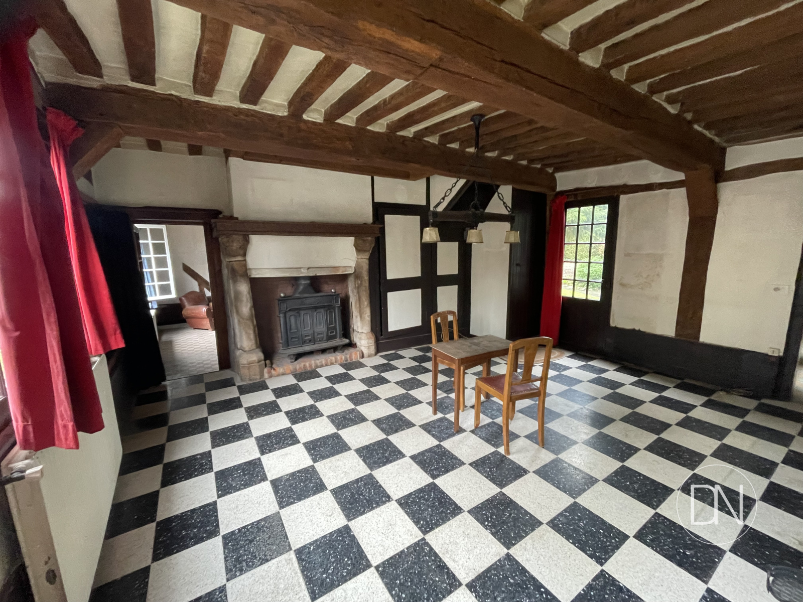 Vous apprécierez son sol à damiers, ses belles poutres, les cheminées normandes, sa cave voutée en pierre, ses tomettes anciennes et planchers à l'étage.