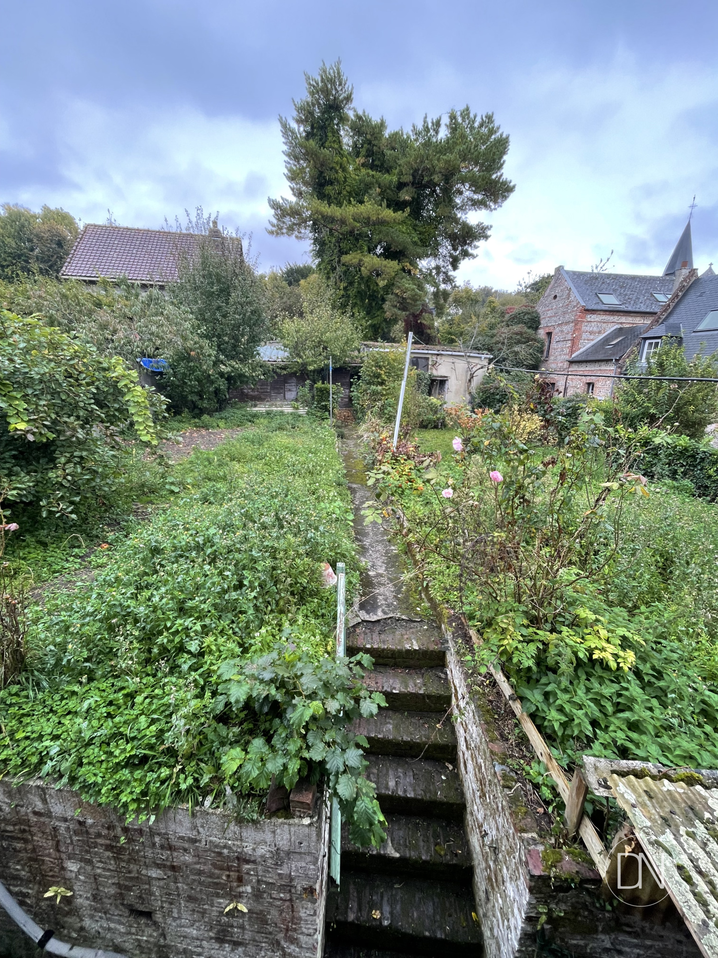 Une charmante cour fleurie avec un premier garage et cellier sur le devant ainsi qu'un jardin de curé avec un autre garage et atelier de 15m² ( chauffé) sur l'arrière complètent l'ensemble.