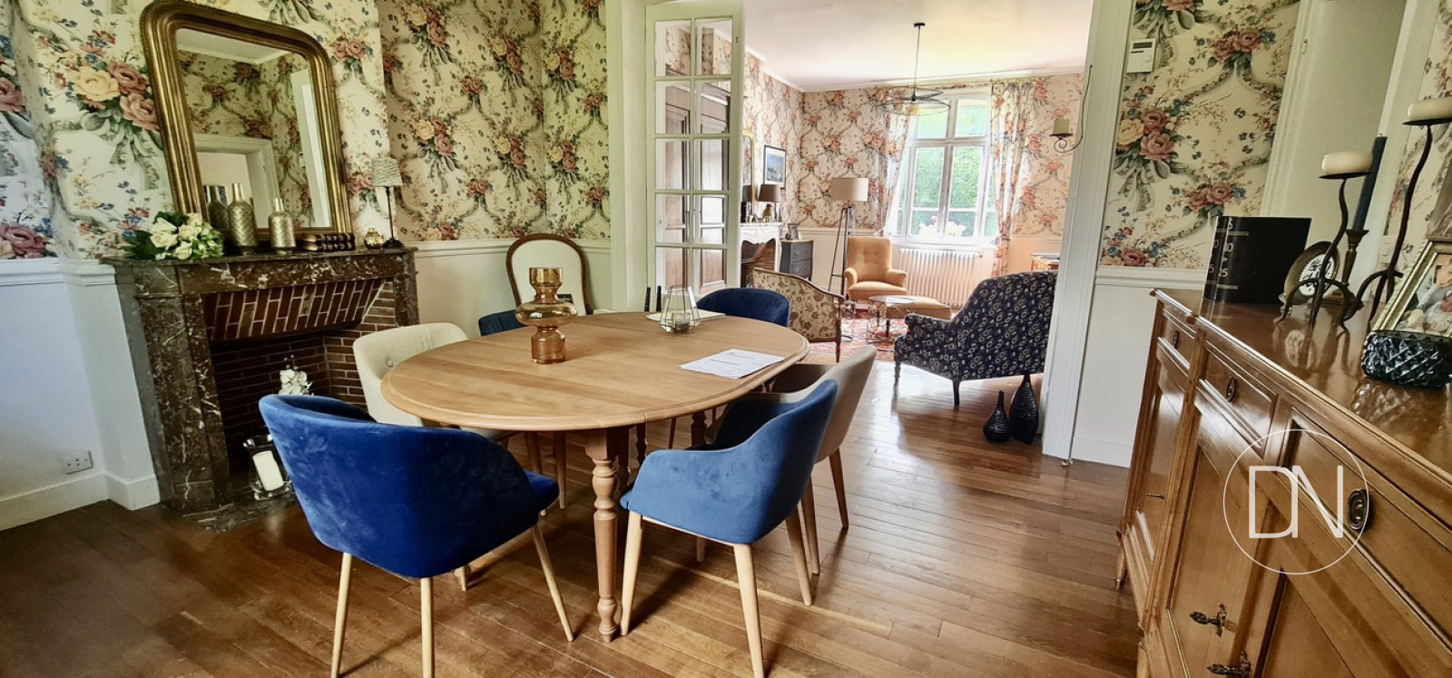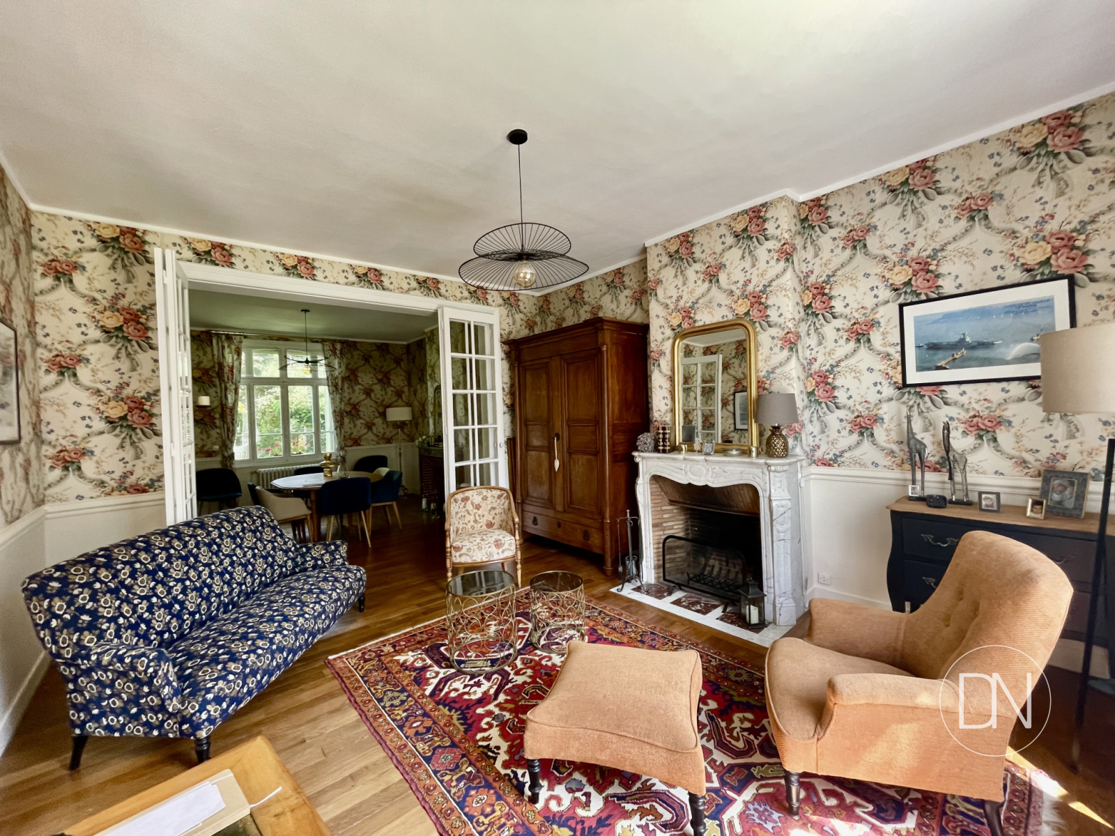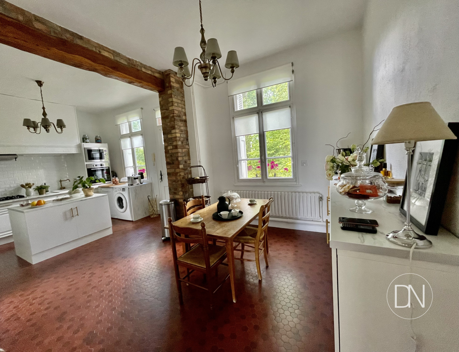 Au coeur d'un village offrant toutes les commodités, cette élégante maison de Maitre, d'une surface habitable d'environ 300 m2 a été revisitée avec beaucoup de soin et d'élégance. Baignée de lumière et ouverte sur le jardin, elle offre de grands espaces de vie. Au rez-de-chaussée, l'entrée distribue un grand séjour avec cheminée, un petit salon et une salle à manger avec cheminée, une cuisine entièrement aménagée et équipée, des toilettes visiteurs . Au 1er étage: le palier ouvre sur 5 chambres toutes avec parquet et cheminée, une salle de bains et une salle d'eau. Toilettes à l'entresol. Au 2ème étage: 2 chambres et 1 salle d'eau .Grenier aménageable d'environ 48m2 . La maison bénéficie d'une terrasse ouvrant sur un jardin paysagé et arboré de 10 000 m2 avec 1 court de tennis, une dépendance abritant un garage et un atelier. Aucun travaux à prévoir. il s'agit d'une très belle prestation. Cette maison pleine de charme conviendra parfaitement à une famille à la recherche d'un bien de caractère tant en résidence principale que secondaire. À 20 min de la mer, 2h15 de Paris avec une gare à 5 km (Bréauté - Ligne Paris- Le Havre), à 30 min du Havre.