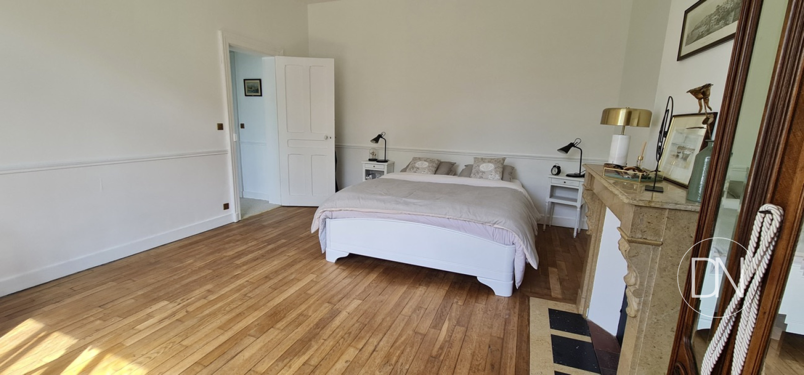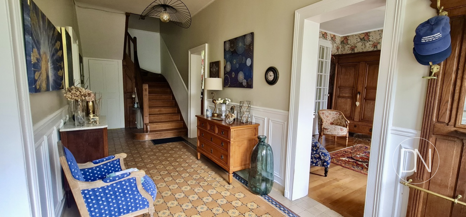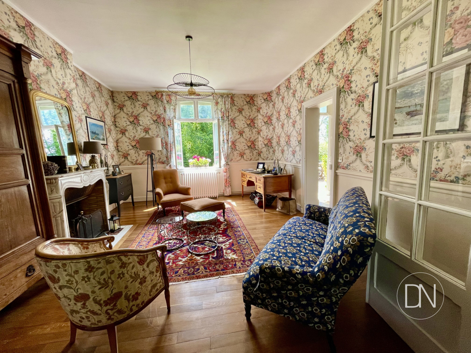 Au coeur d'un village offrant toutes les commodités, cette élégante maison de Maitre, d'une surface habitable d'environ 300 m2 a été revisitée avec beaucoup de soin et d'élégance. Baignée de lumière et ouverte sur le jardin, elle offre de grands espaces de vie. Au rez-de-chaussée, l'entrée distribue un grand séjour avec cheminée, un petit salon et une salle à manger avec cheminée, une cuisine entièrement aménagée et équipée, des toilettes visiteurs . Au 1er étage: le palier ouvre sur 5 chambres toutes avec parquet et cheminée, une salle de bains et une salle d'eau. Toilettes à l'entresol. Au 2ème étage: 2 chambres et 1 salle d'eau .Grenier aménageable d'environ 48m2 . La maison bénéficie d'une terrasse ouvrant sur un jardin paysagé et arboré de 10 000 m2 avec 1 court de tennis, une dépendance abritant un garage et un atelier. Aucun travaux à prévoir. il s'agit d'une très belle prestation. Cette maison pleine de charme conviendra parfaitement à une famille à la recherche d'un bien de caractère tant en résidence principale que secondaire. À 20 min de la mer, 2h15 de Paris avec une gare à 5 km (Bréauté - Ligne Paris- Le Havre), à 30 min du Havre.