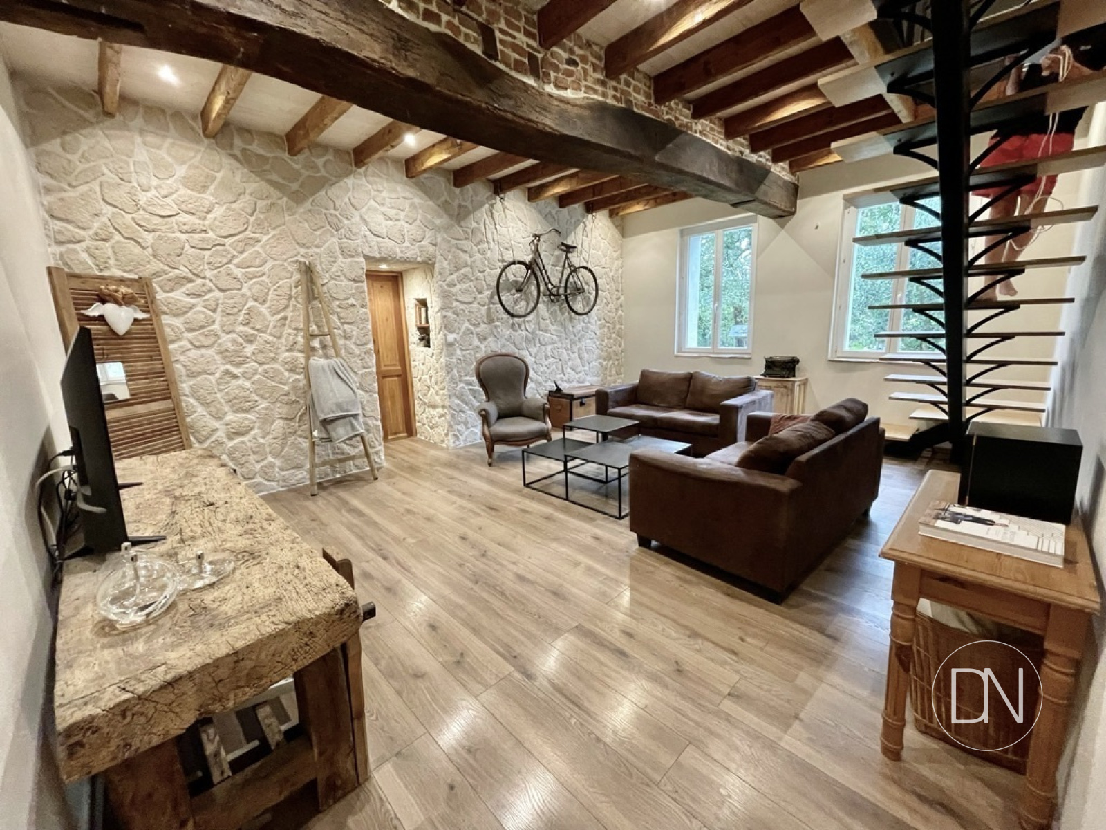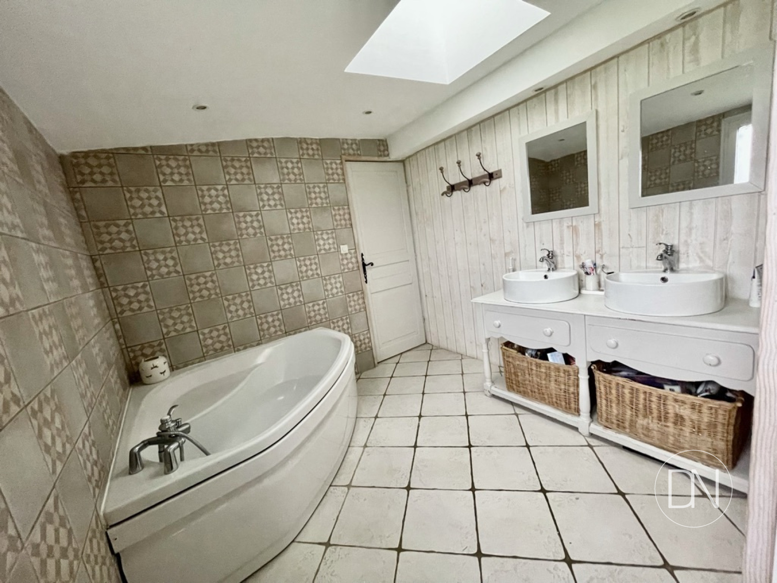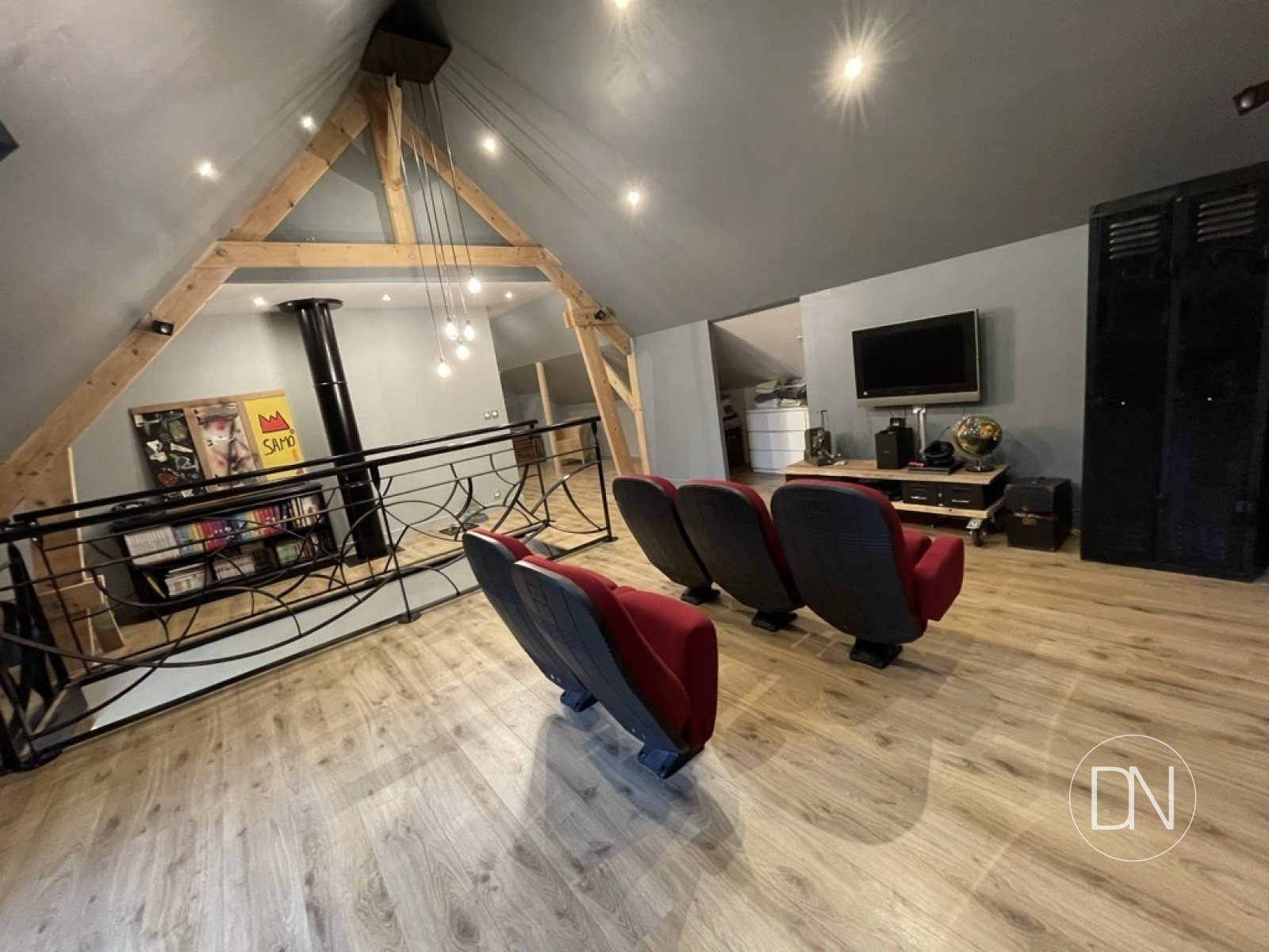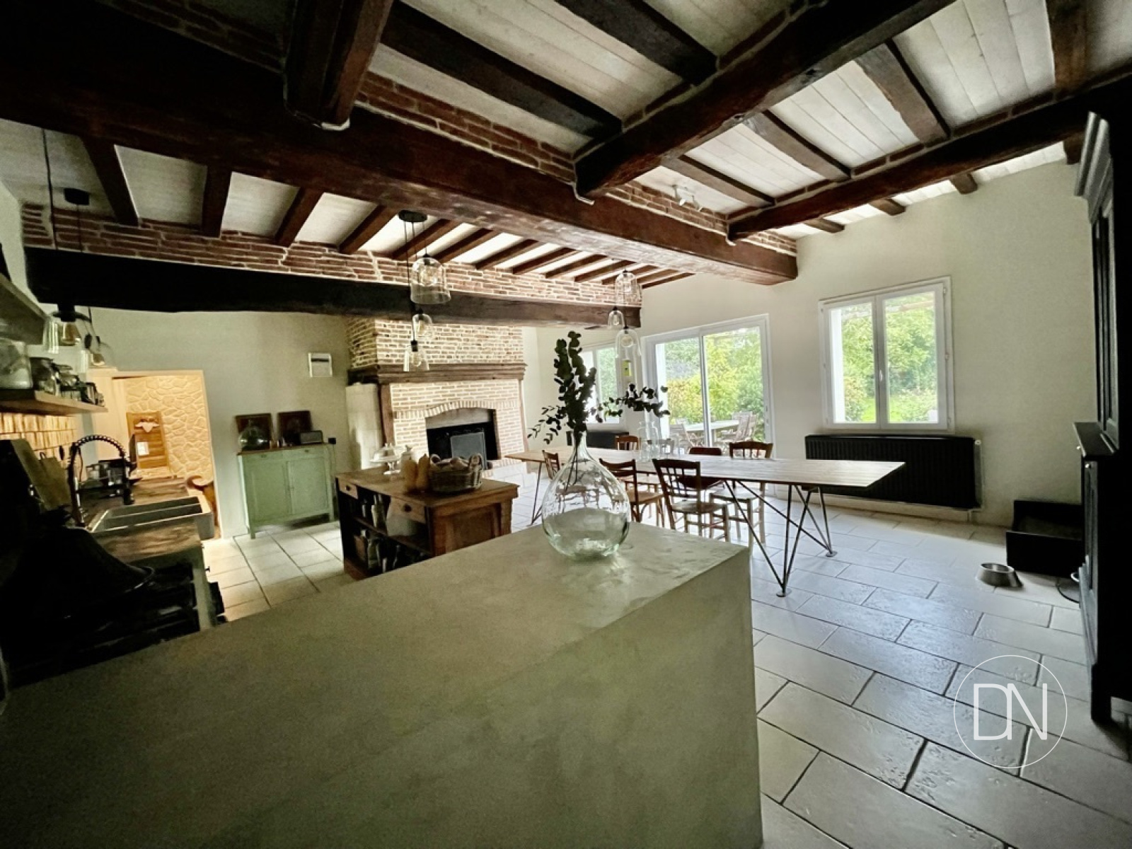 Si la façade témoigne plutôt d'une maison contemporaine, l'intérieur confirme une construction 19ème, brique et silex. D'une surface habitable d'environ 220 m2, la maison propose de beaux espaces de vie aménagés avec goût et confort alliant la note contemporaine à l'ancien. Elle comprend, au rez-de-chaussée: entrée, cuisine aménagée et équipée ouverte sur un coin repas et une terrasse, wc, arrière cuisine, salle de bains, cellier et pièce de rangement, un salon et une chambre. À l'étage, vaste pièce palière aménagée en salle vidéo/cinéma, 3 chambres et une salle de bains à finaliser. Devant la maison, jardin de 1695 m2 paysagé et arboré avec une grande terrasse bois et une dépendance de 14 m2 servant actuellement de pièce de rangement. Les travaux à prévoir consisteraient à aménaget la 2ème pièce d'eau à l'étage et refaire la façade de la maison pour lui apporter davantage de cachet.. Elle conviendra parfaitement à une famille en résidence principale. Tous services et commerces à Caudebec-en-Caux et Yvetot (10 et 20 minutes en voiture).